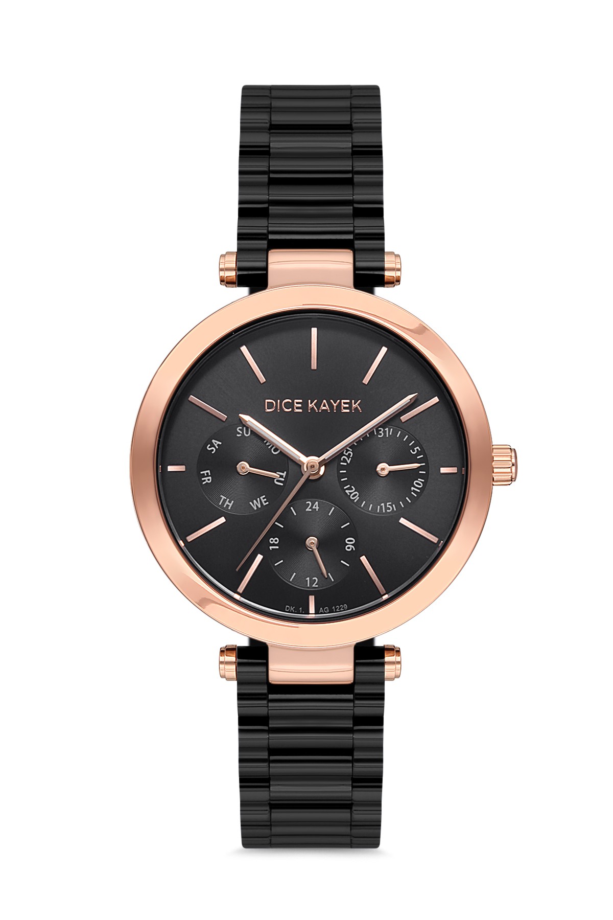Kadın - Multi̇ Fonksi̇yon - Rose Si̇yah - Si̇yah - Paslanmaz Masi̇f Çeli̇k - 3 Atm - Sertleşti̇ri̇lmi̇ş Mi̇neral Cam - Dice Kayek