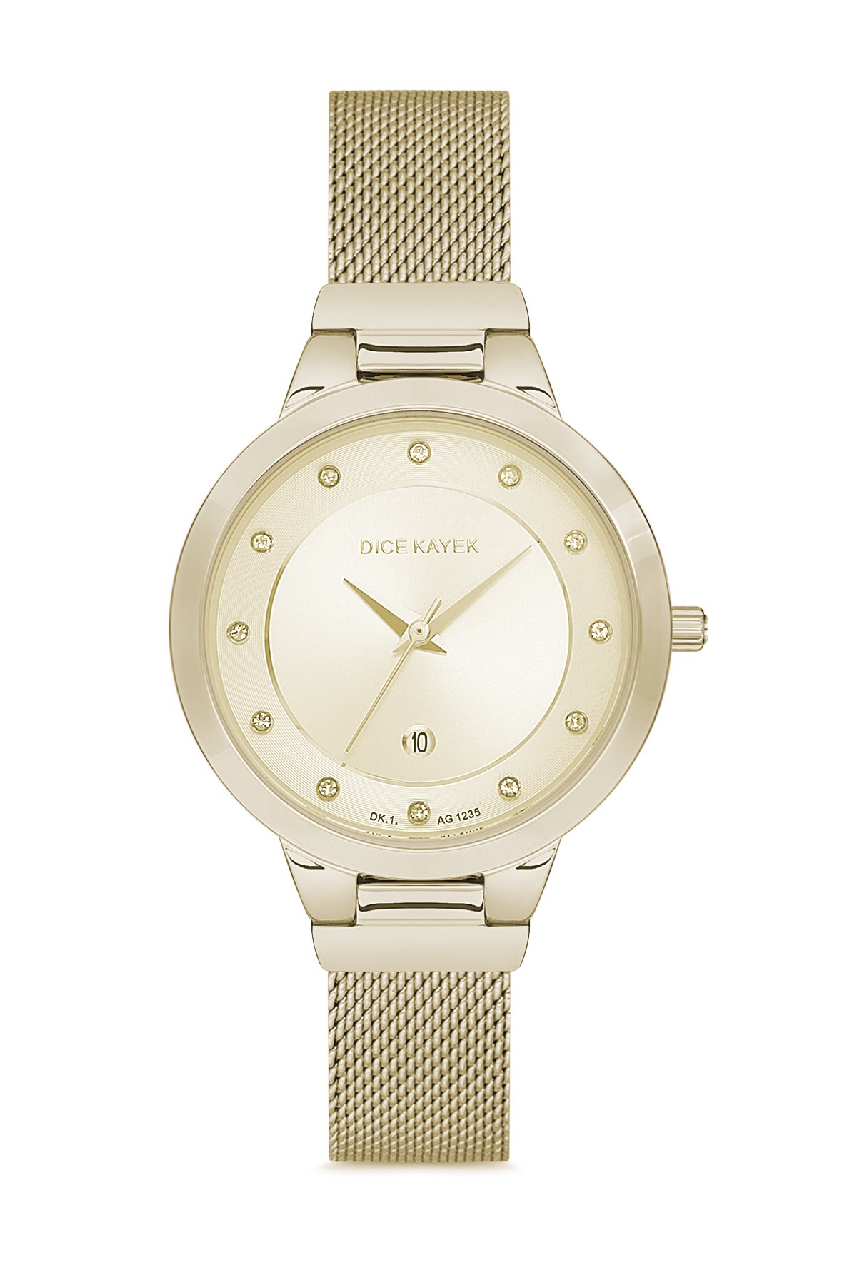 Kadın - Takvi̇mli̇ - Sari - Sari - Çeli̇k Örme Kordon - 3 Atm - Sertleşti̇ri̇lmi̇ş Mi̇neral Cam - Dice Kayek