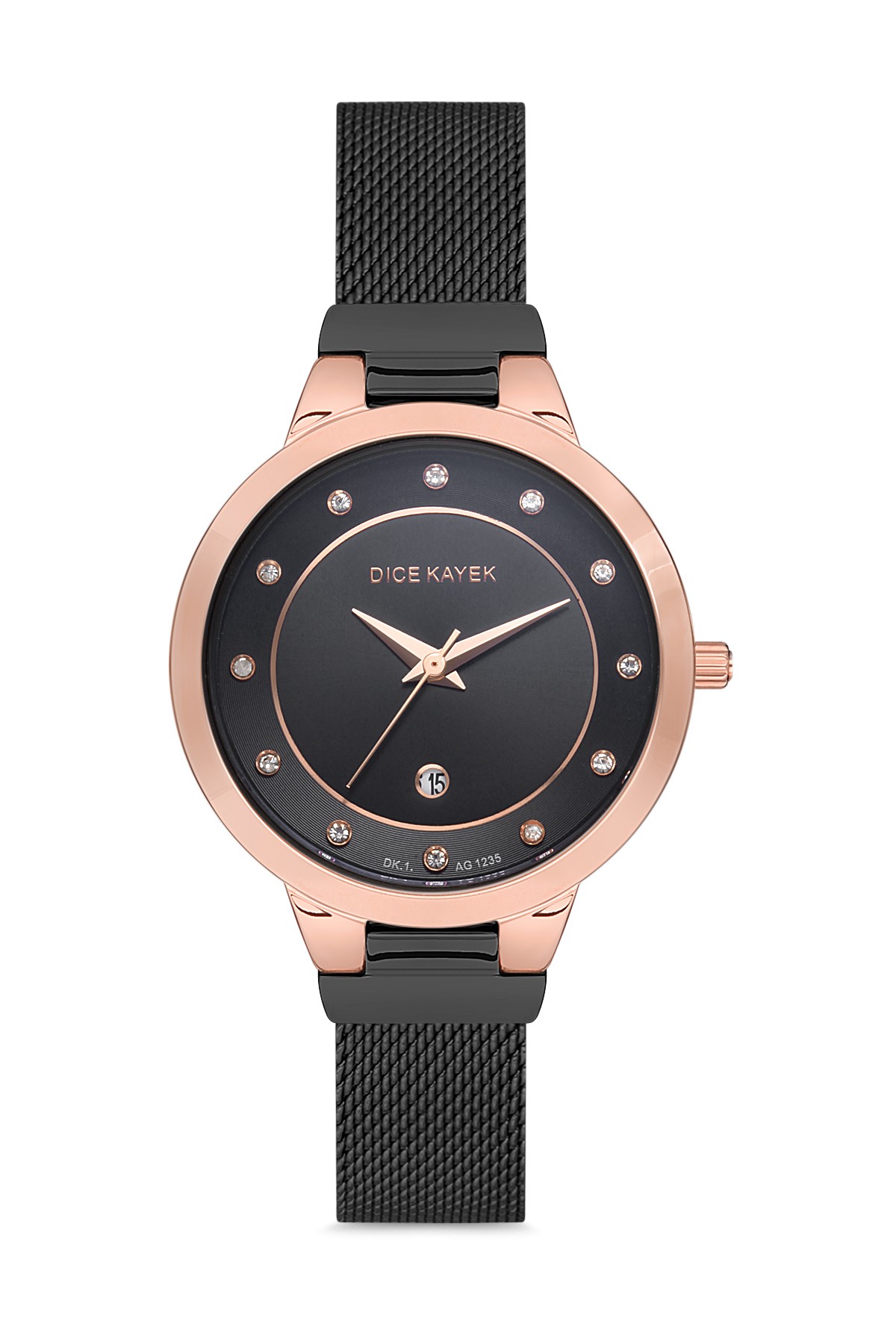 Kadın - Takvi̇mli̇ - Rose Si̇yah - Si̇yah - Çeli̇k Örme Kordon - 3 Atm - Sertleşti̇ri̇lmi̇ş Mi̇neral Cam - Dice Kayek