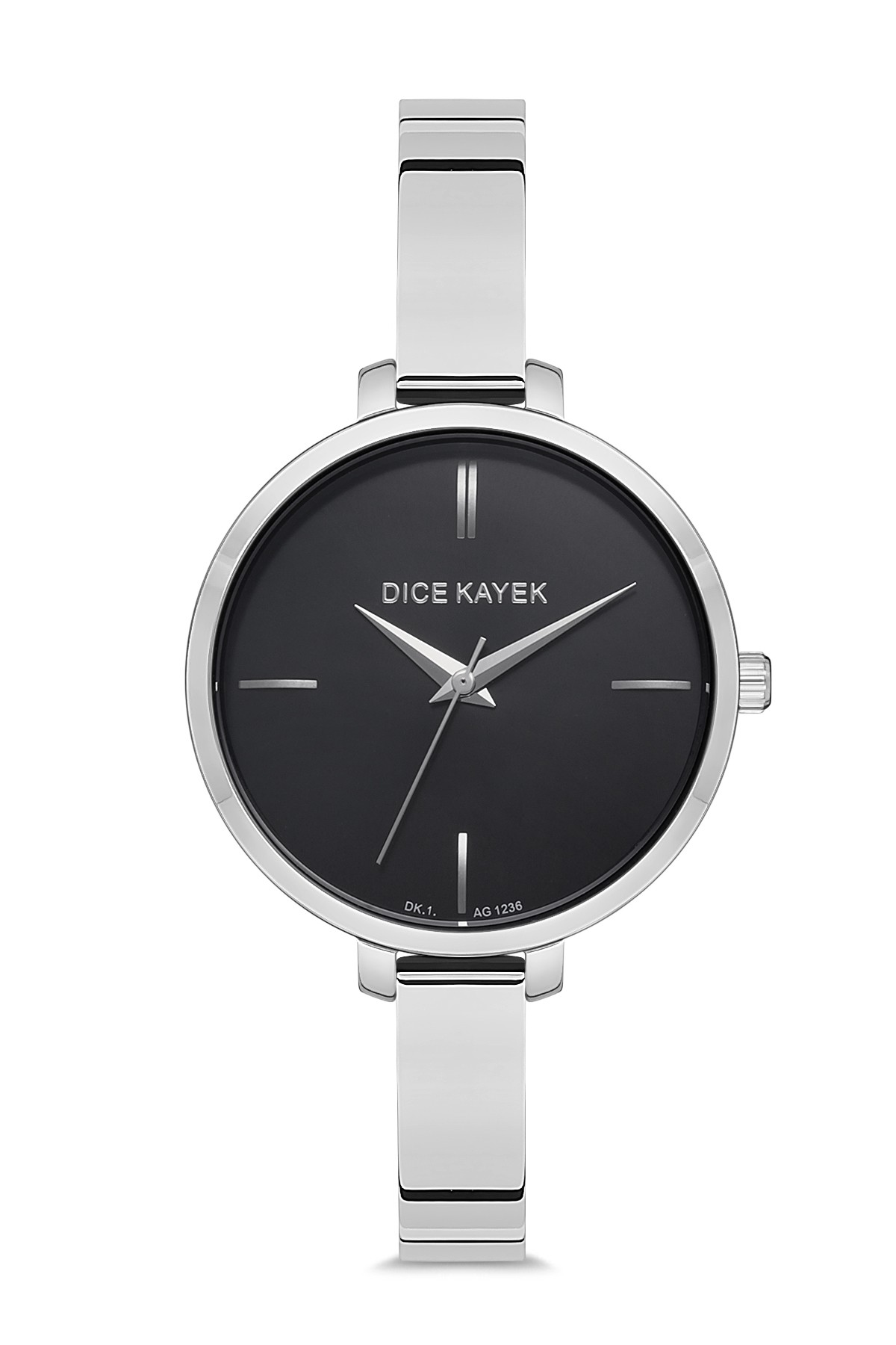 Kadın - Düz - Gümüş - Si̇yah - Paslanmaz Masi̇f Çeli̇k - 3 Atm - Sertleşti̇ri̇lmi̇ş Mi̇neral Cam - Dice Kayek - 35
