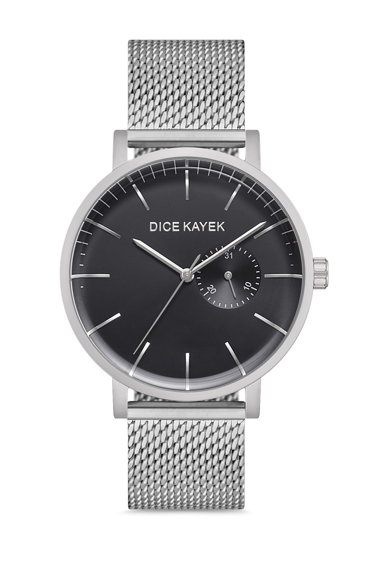 Erkek - Alttan Sani̇ye - Gümüş - Si̇yah - Çeli̇k Örme Kordon - 3 Atm - Sertleşti̇ri̇lmi̇ş Mi̇neral Cam - Dice Kayek