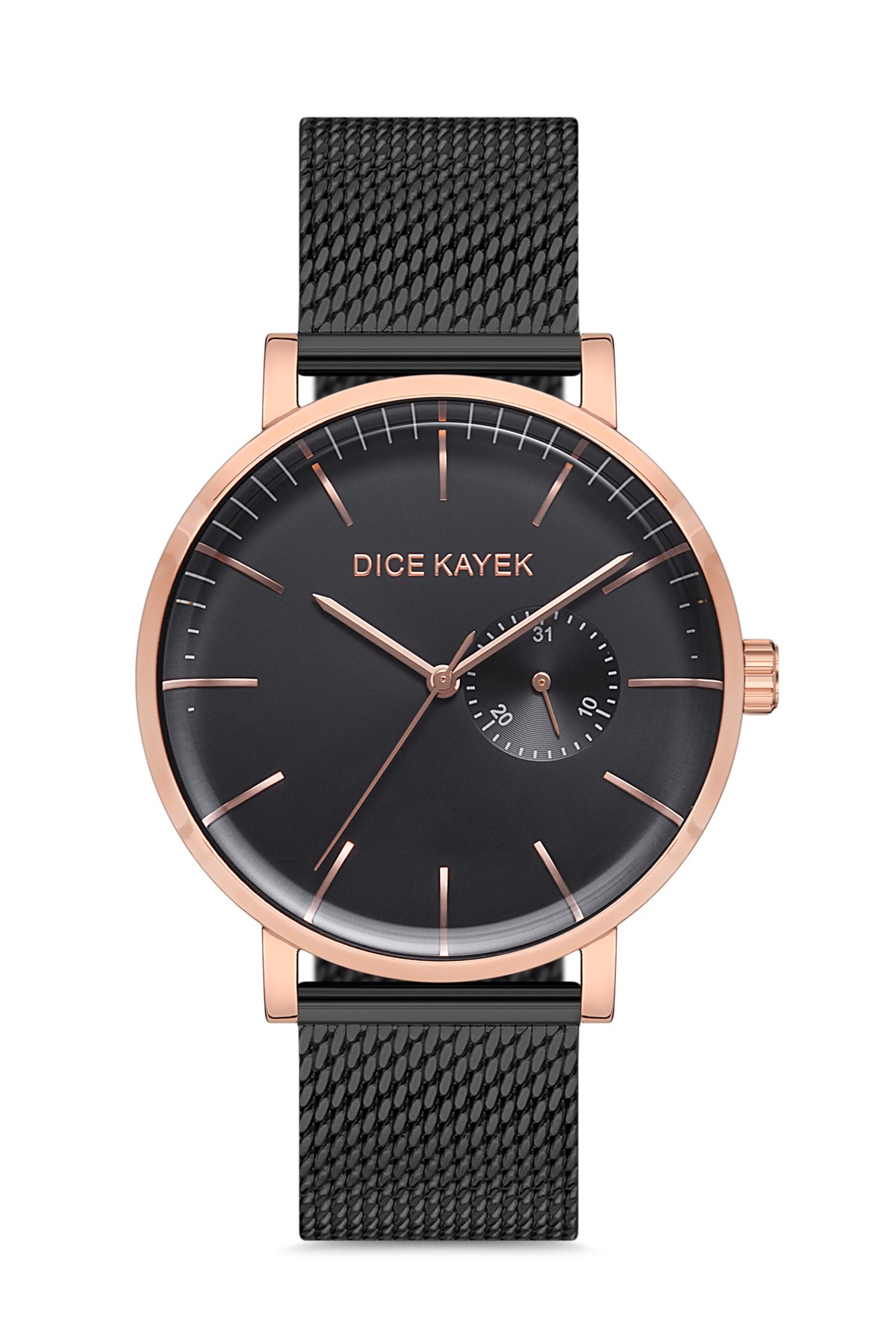 Erkek - Alttan Sani̇ye - Rose Si̇yah - Si̇yah - Çeli̇k Örme Kordon - 3 Atm - Sertleşti̇ri̇lmi̇ş Mi̇neral Cam - Dice Kayek