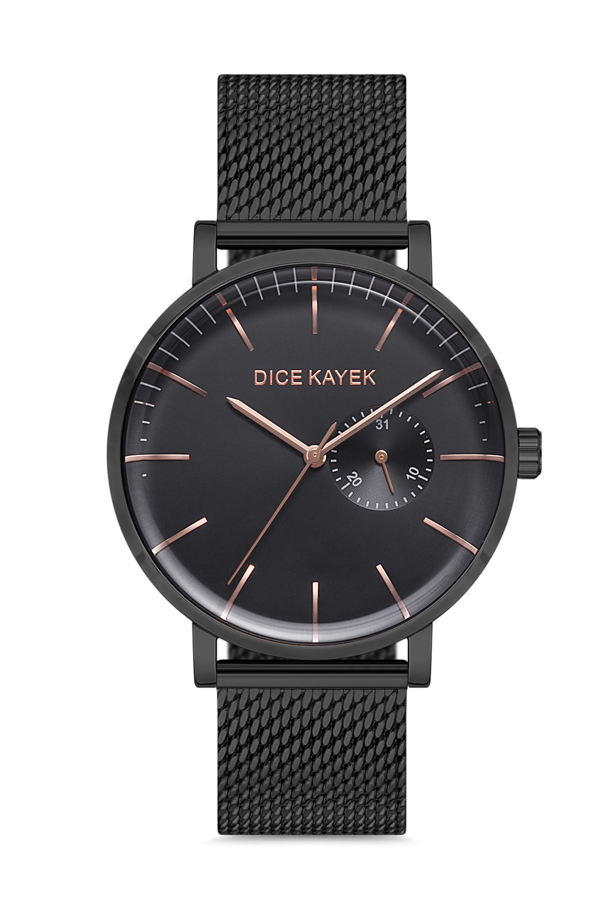 Erkek - Alttan Sani̇ye - Si̇yah - Si̇yah - Çeli̇k Örme Kordon - 3 Atm - Sertleşti̇ri̇lmi̇ş Mi̇neral Cam - Dice Kayek