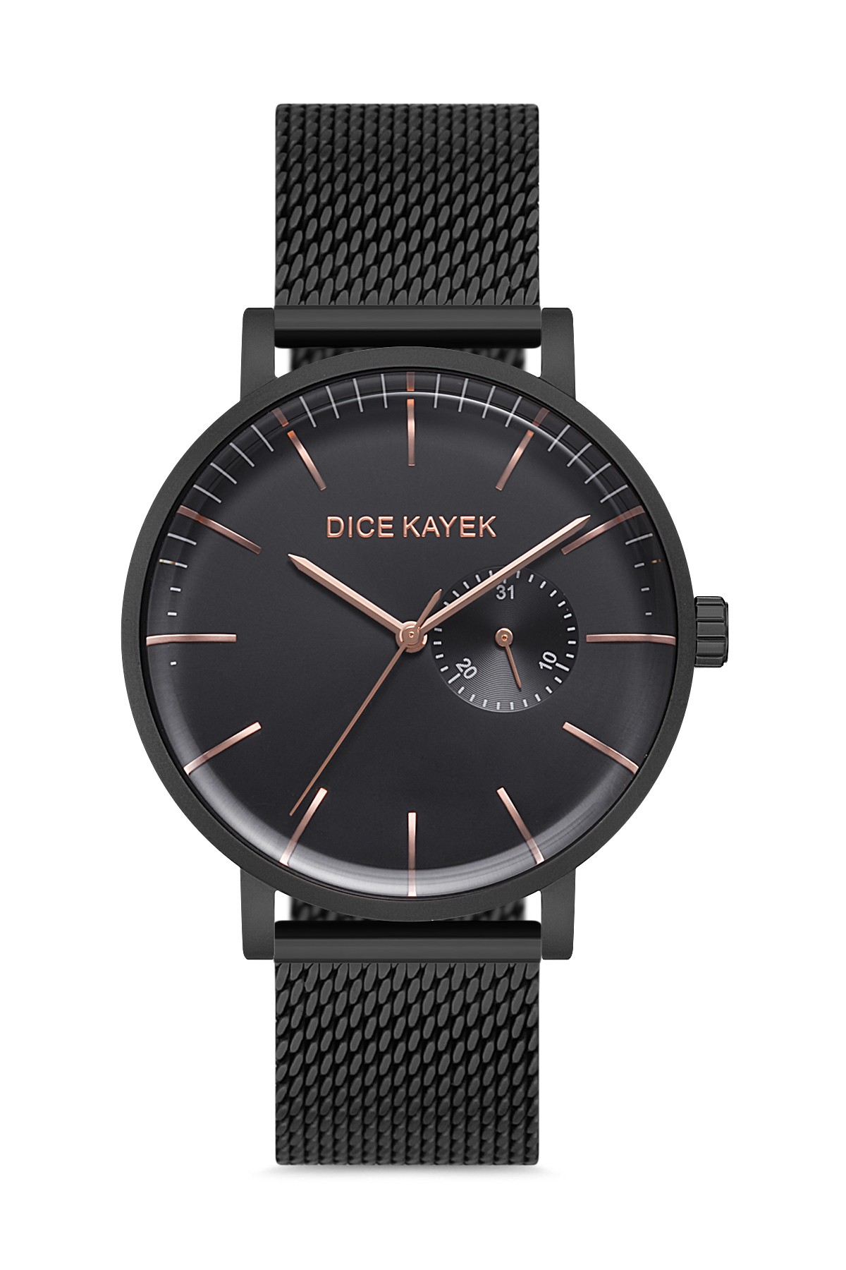 Erkek - Alttan Sani̇ye - Si̇yah - Si̇yah - Çeli̇k Örme Kordon - 3 Atm - Sertleşti̇ri̇lmi̇ş Mi̇neral Cam - Dice Kayek