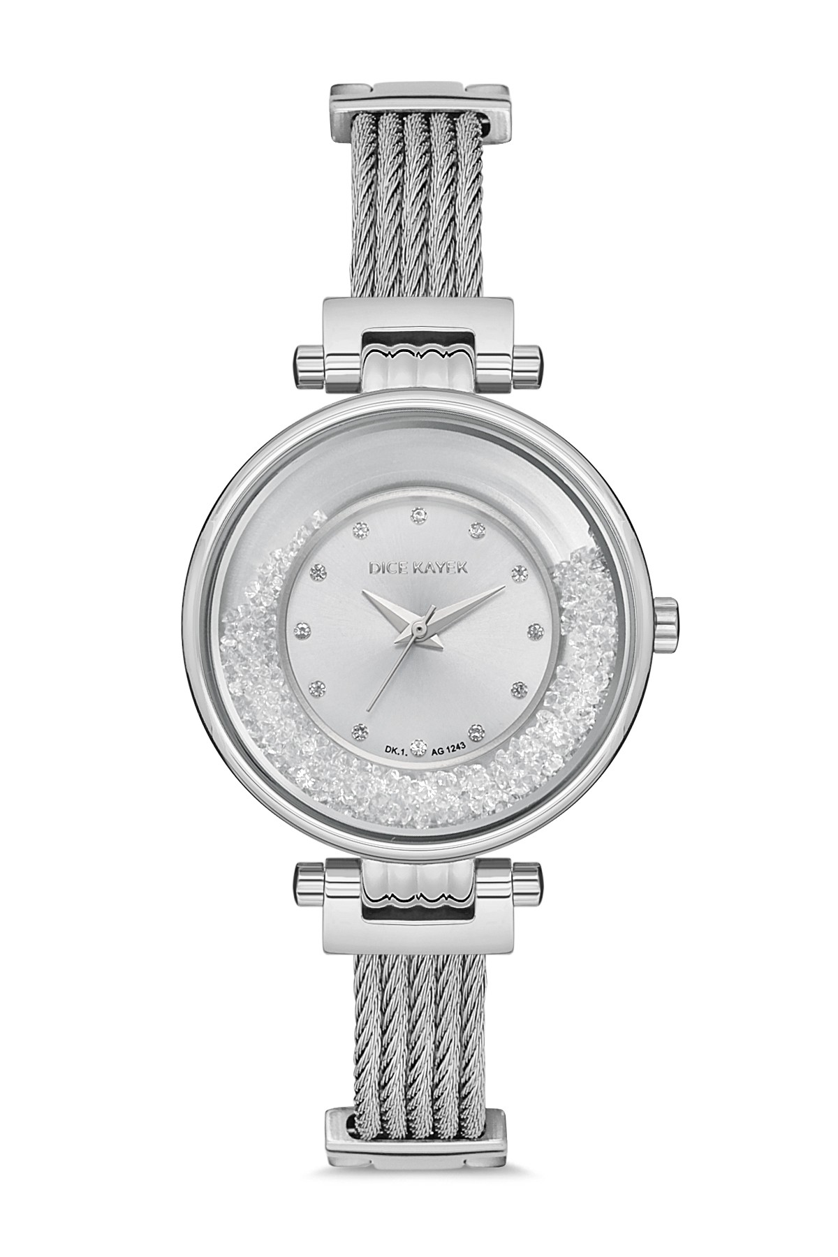 Kadın - Taşli - Gümüş - Gümüş - Paslanmaz Masi̇f Çeli̇k - 3 Atm - Sertleşti̇ri̇lmi̇ş Mi̇neral Cam - Dice Kayek