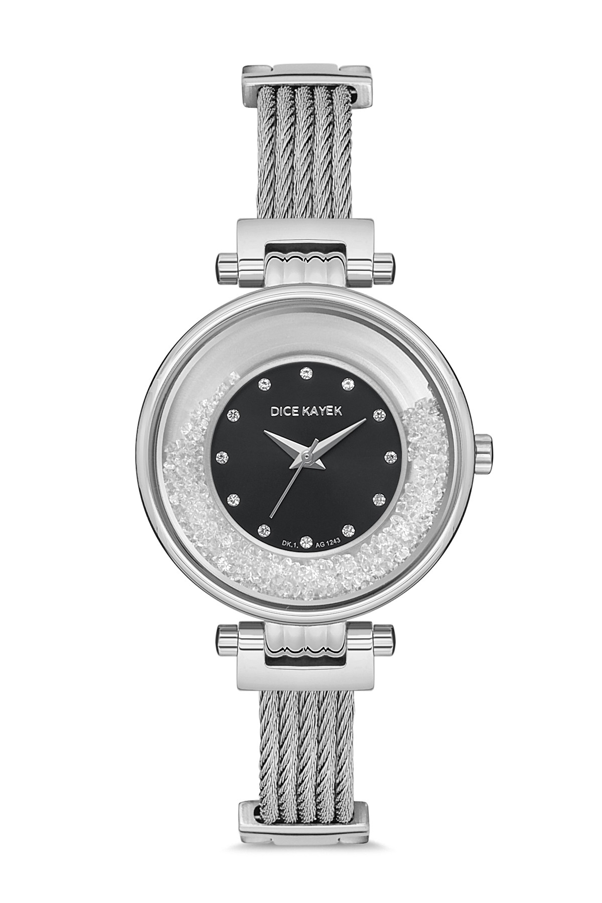 Kadın - Taşli - Gümüş - Si̇yah - Paslanmaz Masi̇f Çeli̇k - 3 Atm - Sertleşti̇ri̇lmi̇ş Mi̇neral Cam - Dice Kayek