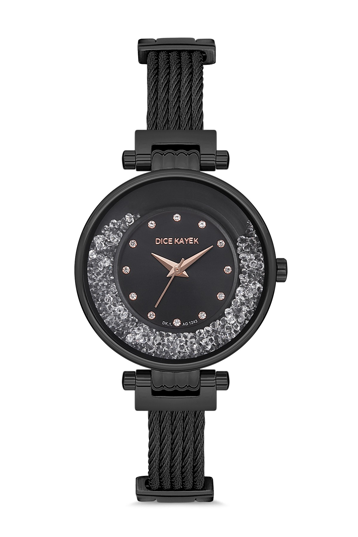 Kadın - Taşli - Si̇yah - Si̇yah - Paslanmaz Masi̇f Çeli̇k - 3 Atm - Sertleşti̇ri̇lmi̇ş Mi̇neral Cam - Dice Kayek