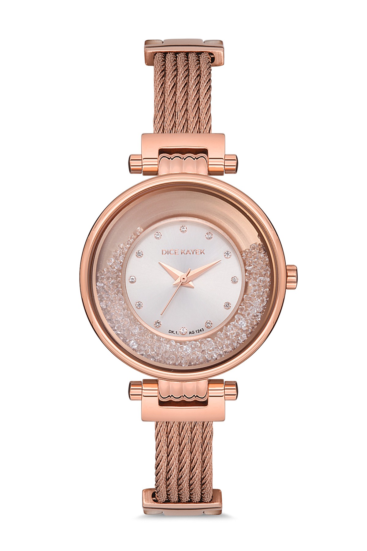 Kadın - Taşli - Rose - Gümüş - Paslanmaz Masi̇f Çeli̇k - 3 Atm - Sertleşti̇ri̇lmi̇ş Mi̇neral Cam - Dice Kayek