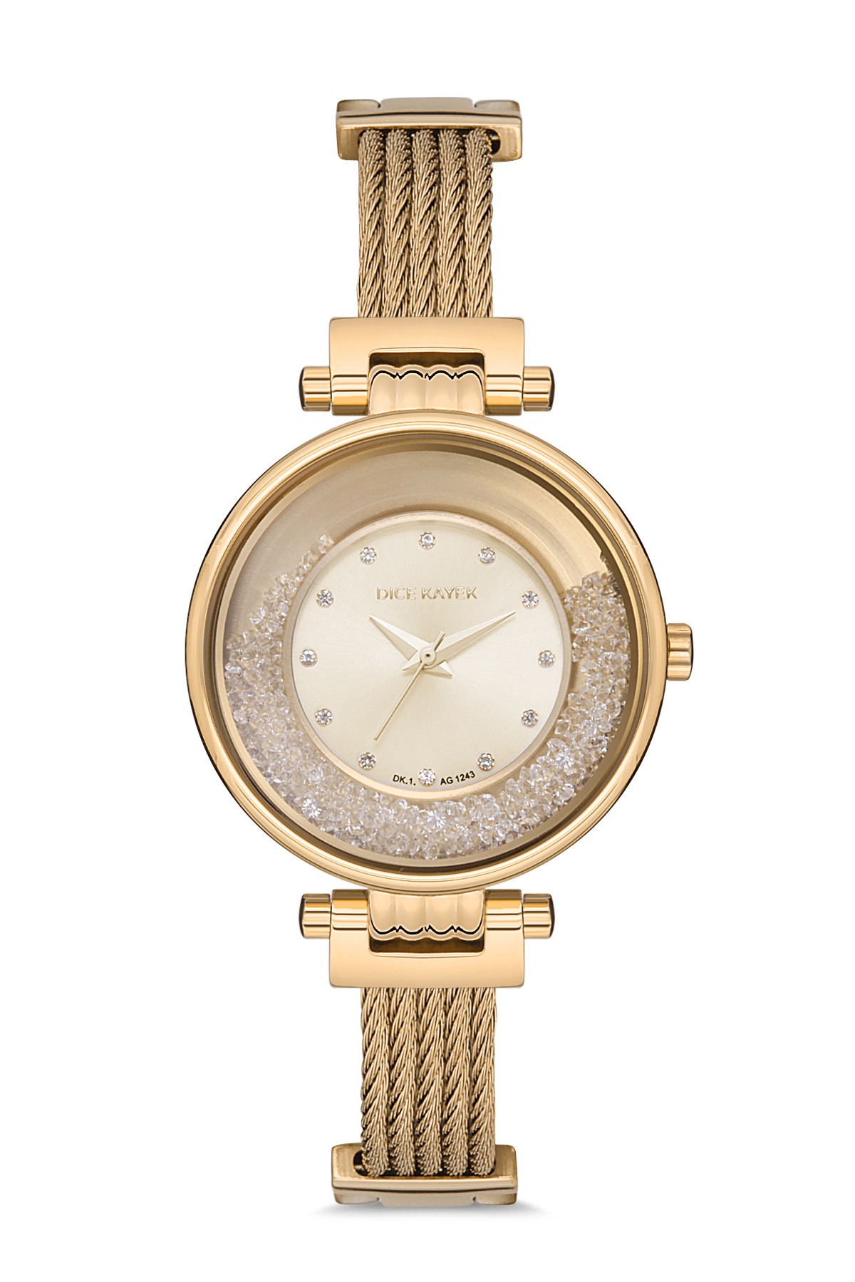 Kadın - Taşli - Sari - Sari - Paslanmaz Masi̇f Çeli̇k - 3 Atm - Sertleşti̇ri̇lmi̇ş Mi̇neral Cam - Dice Kayek