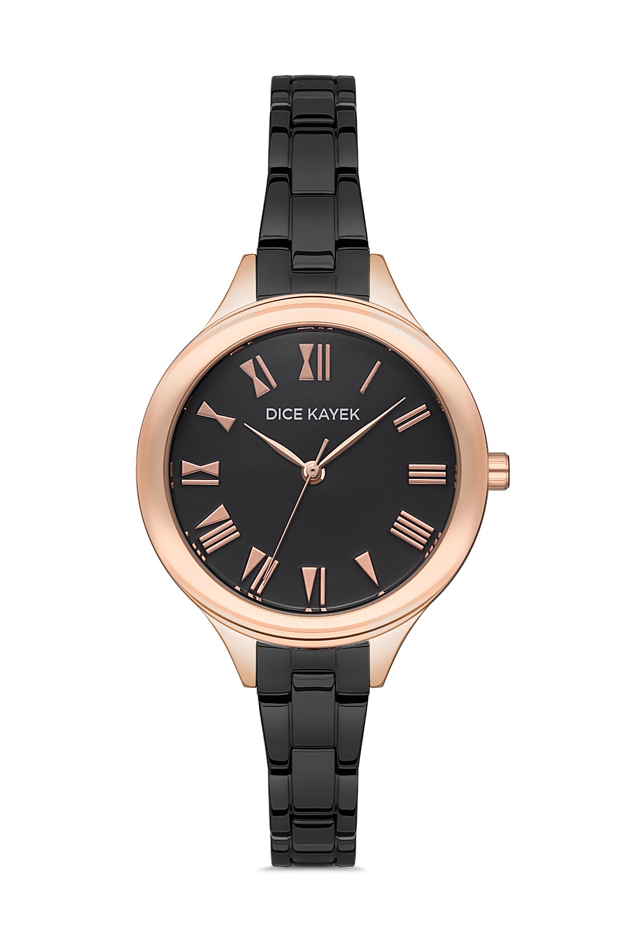 Kadın - Düz - Rose Si̇yah - Si̇yah - Paslanmaz Masi̇f Çeli̇k - 3 Atm - Sertleşti̇ri̇lmi̇ş Mi̇neral Cam - Dice Kayek