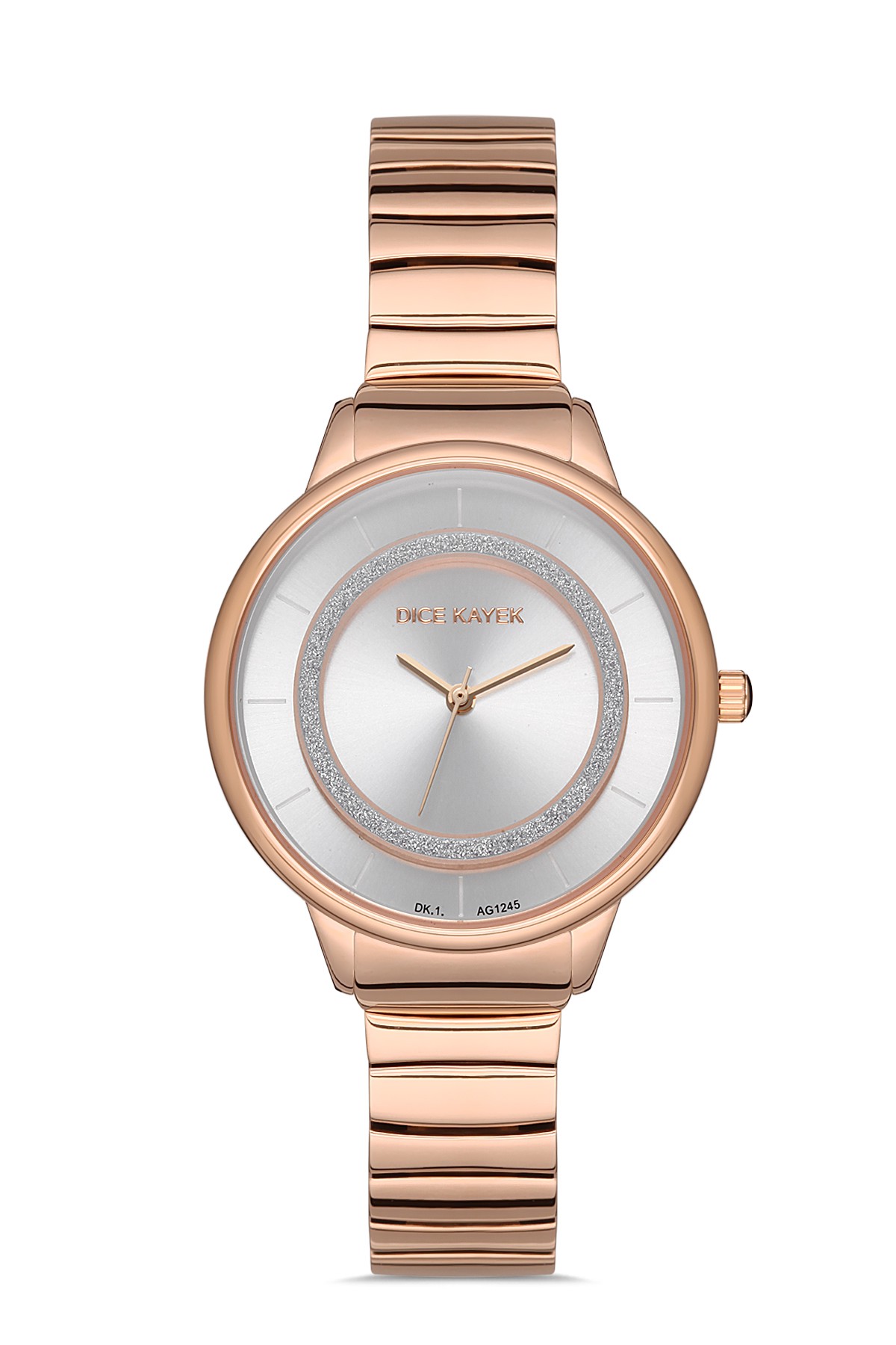 Kadın - Düz - Rose - Gümüş - Paslanmaz Masi̇f Çeli̇k - 3 Atm - Sertleşti̇ri̇lmi̇ş Mi̇neral Cam - Dice Kayek