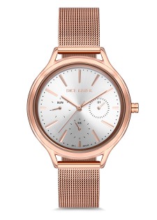 Kadın - Düz - Rose - Gümüş - Paslanmaz Masi̇f Çeli̇k - 3 Atm - Sertleşti̇ri̇lmi̇ş Mi̇neral Cam - Dice Kayek