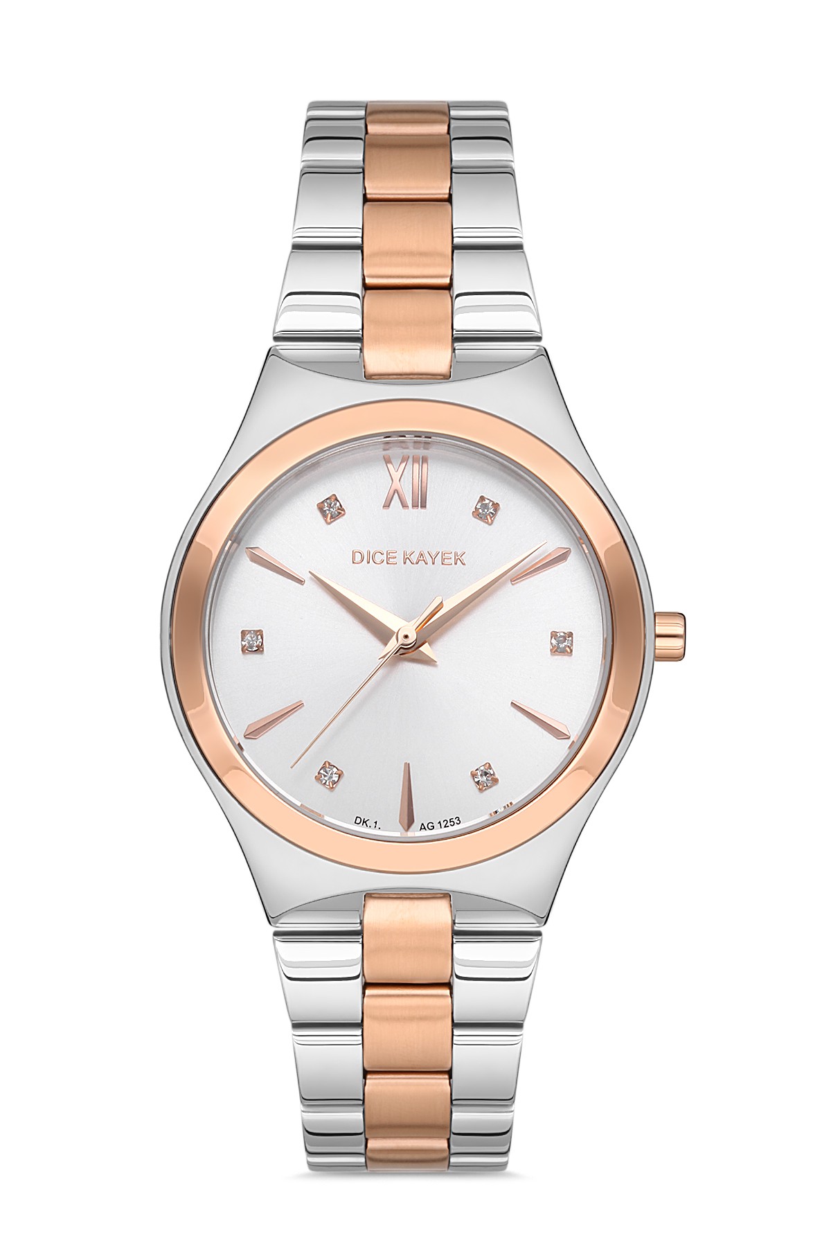 Kadın - Düz - Rose Beyaz - Gümüş - Paslanmaz Masi̇f Çeli̇k - 3 Atm - Sertleşti̇ri̇lmi̇ş Mi̇neral Cam - Dice Kayek