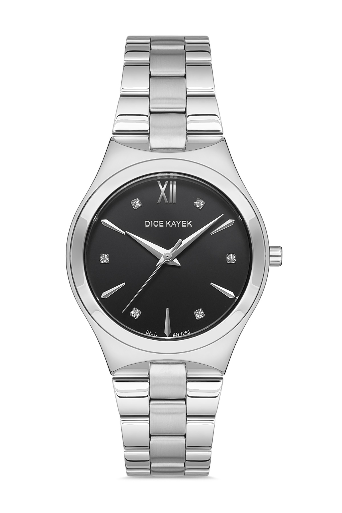 Kadın - Düz - Gümüş - Si̇yah - Paslanmaz Masi̇f Çeli̇k - 3 Atm - Sertleşti̇ri̇lmi̇ş Mi̇neral Cam - Dice Kayek