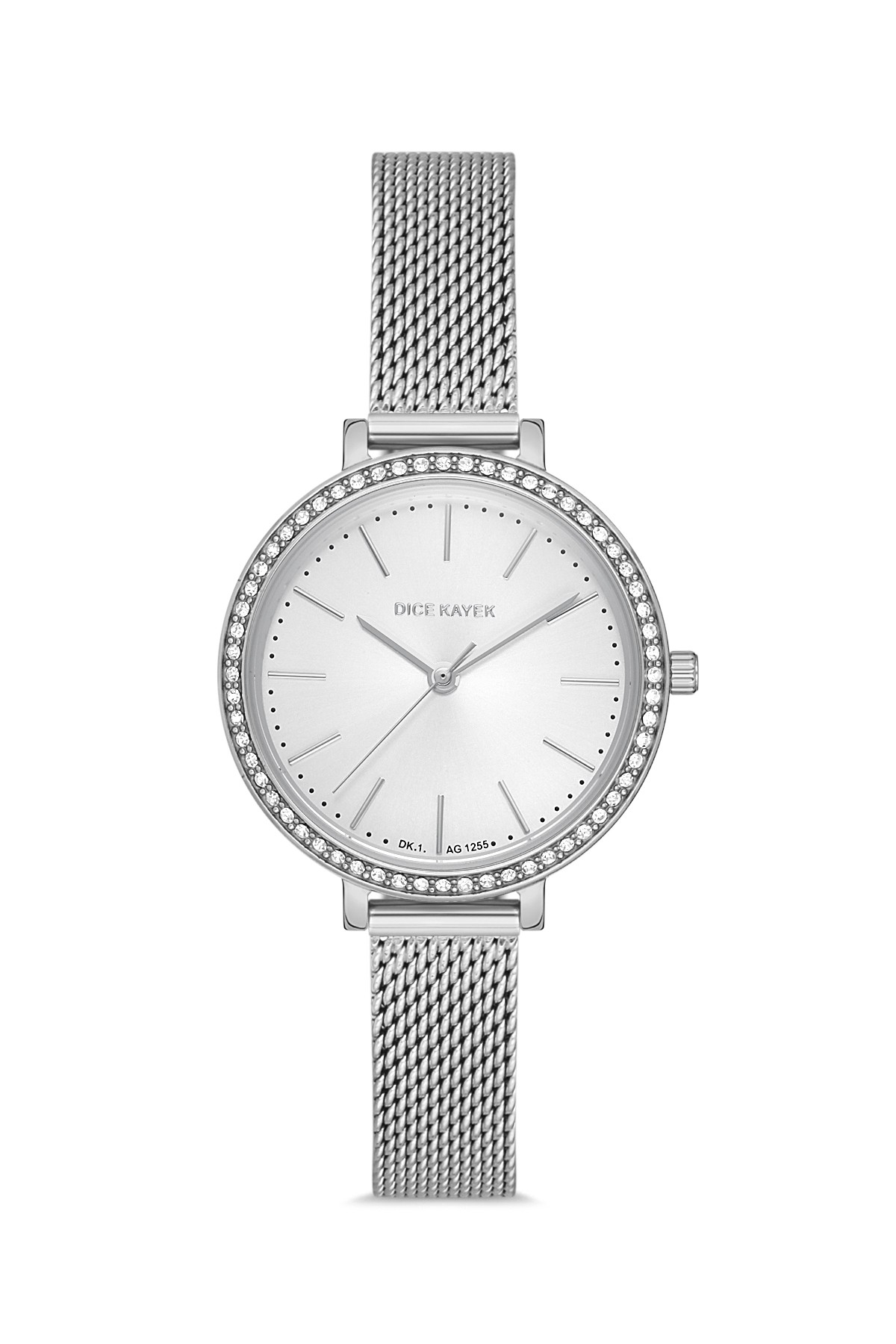Kadın - Taşli - Gümüş - Gümüş - Çeli̇k Örme Kordon - 3 Atm - Sertleşti̇ri̇lmi̇ş Mi̇neral Cam - Dice Kayek