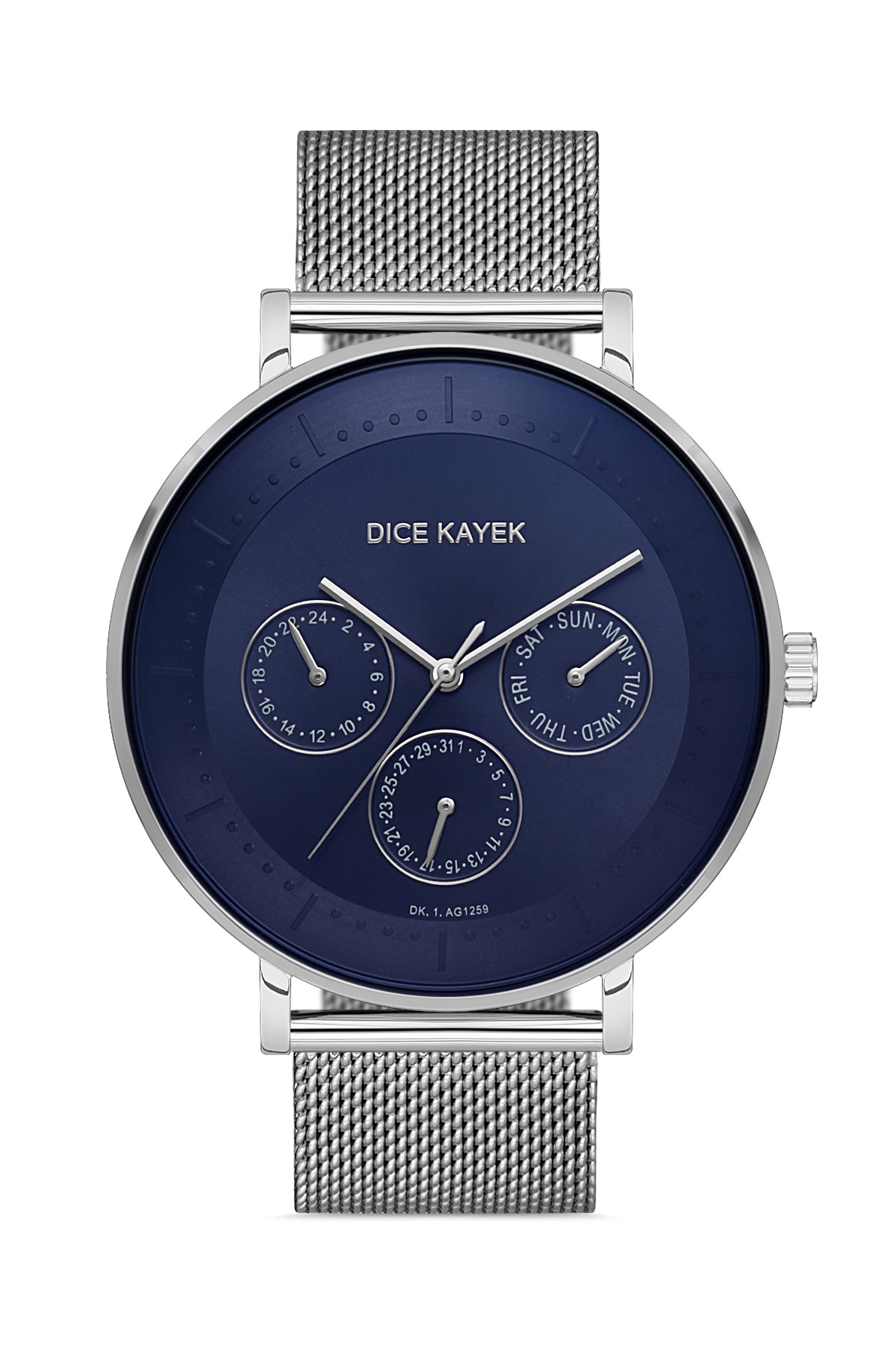 Erkek - Multi̇ Fonksi̇yon - Gümüş - Mavi̇ - Çeli̇k Örme Kordon - 3 Atm - Sertleşti̇ri̇lmi̇ş Mi̇neral Cam - Dice Kayek