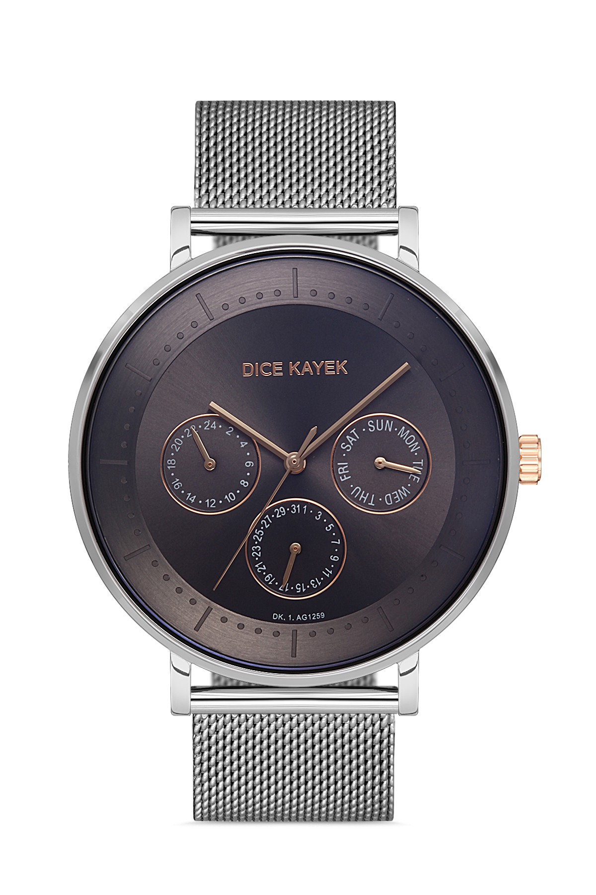 Erkek - Multi̇ Fonksi̇yon - Gümüş - Gri̇ - Çeli̇k Örme Kordon - 3 Atm - Sertleşti̇ri̇lmi̇ş Mi̇neral Cam - Dice Kayek