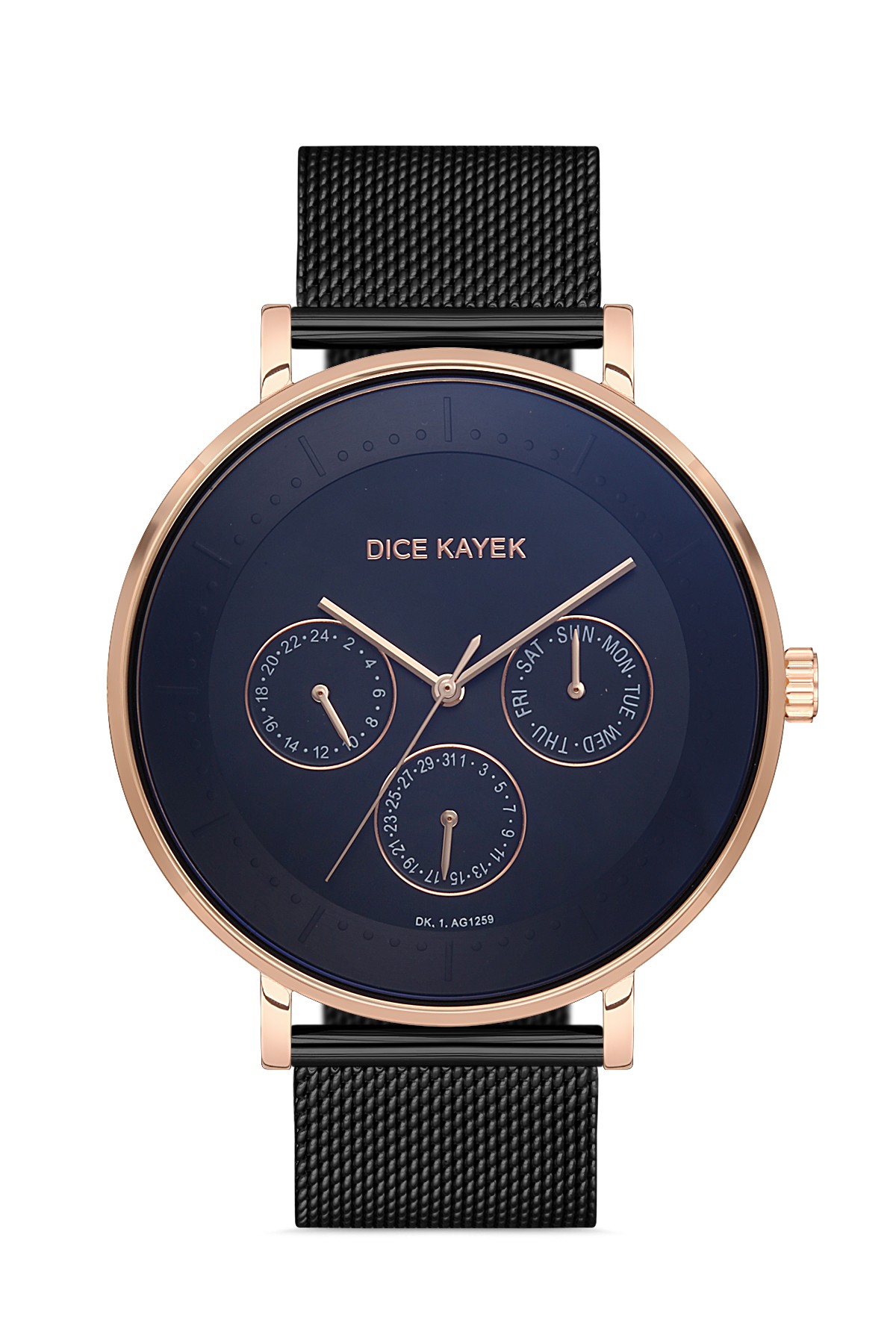 Erkek - Multi̇ Fonksi̇yon - Rose Si̇yah - Si̇yah - Çeli̇k Örme Kordon - 3 Atm - Sertleşti̇ri̇lmi̇ş Mi̇neral Cam - Dice Kayek