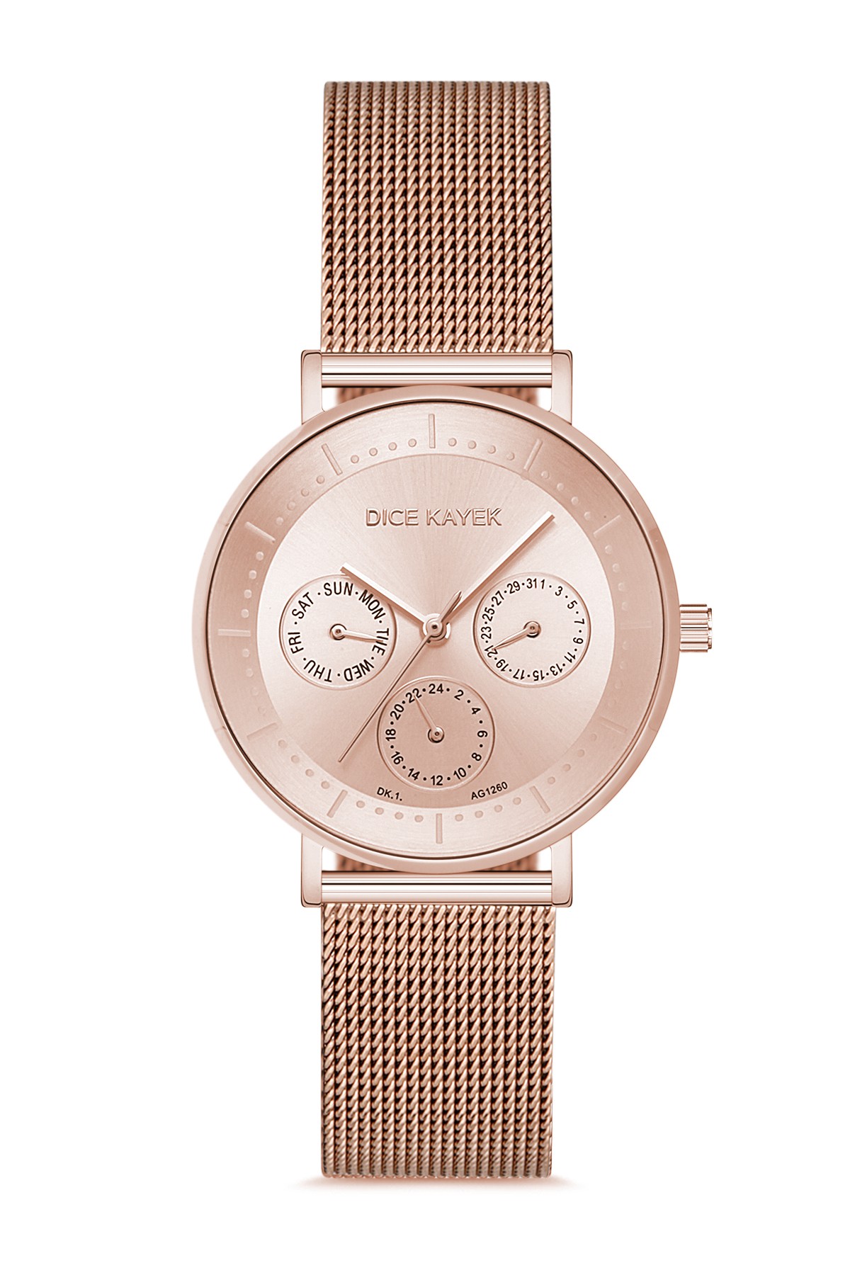 Kadın - Multi̇ Fonksi̇yon - Rose - Rose - Çeli̇k Örme Kordon - 3 Atm - Sertleşti̇ri̇lmi̇ş Mi̇neral Cam - Dice Kayek