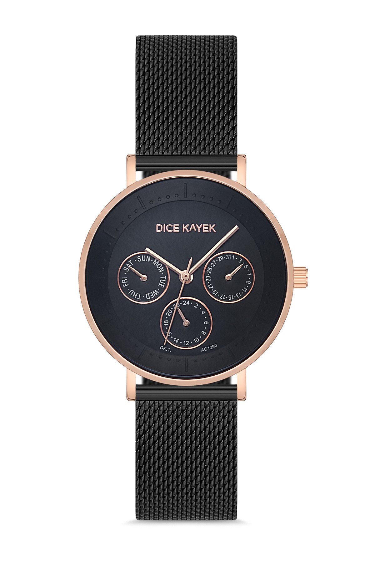 Kadın - Multi̇ Fonksi̇yon - Rose Si̇yah - Si̇yah - Çeli̇k Örme Kordon - 3 Atm - Sertleşti̇ri̇lmi̇ş Mi̇neral Cam - Dice Kayek
