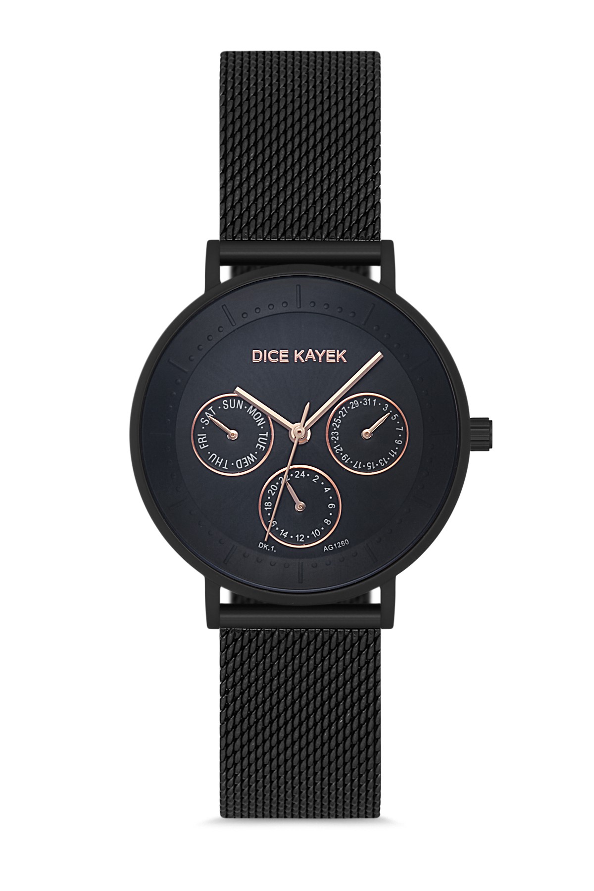 Kadın - Multi̇ Fonksi̇yon - Si̇yah - Si̇yah - Çeli̇k Örme Kordon - 3 Atm - Sertleşti̇ri̇lmi̇ş Mi̇neral Cam - Dice Kayek