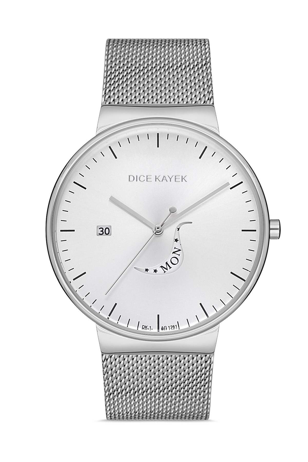 Erkek - Takvi̇mli̇ - Gümüş - Gümüş - Çeli̇k Örme Kordon - 3 Atm - Sertleşti̇ri̇lmi̇ş Mi̇neral Cam - Dice Kayek