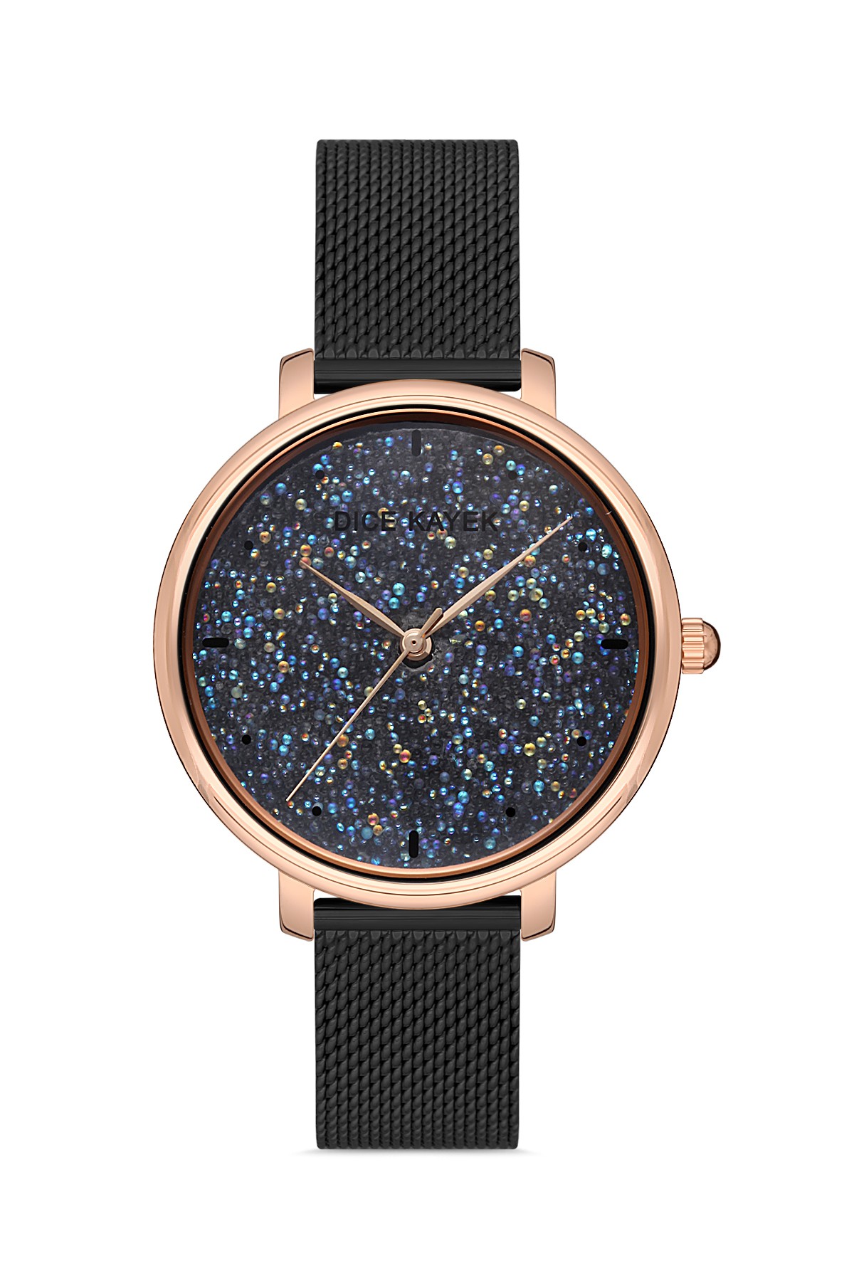 Kadın - Düz - Rose Si̇yah - Si̇yah - Çeli̇k Örme Kordon - 3 Atm - Sertleşti̇ri̇lmi̇ş Mi̇neral Cam - Dice Kayek