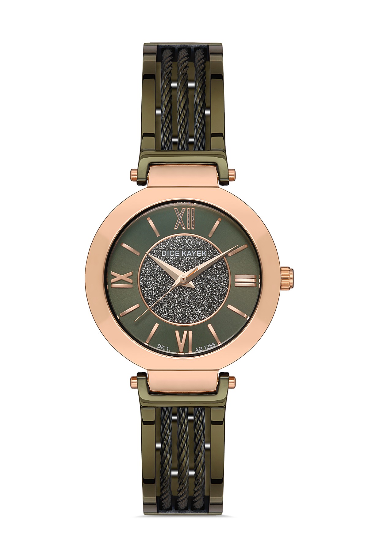 Kadın - Düz - Rose - Yeşi̇l - Paslanmaz Masi̇f Çeli̇k - 3 Atm - Sertleşti̇ri̇lmi̇ş Mi̇neral Cam - Dice Kayek