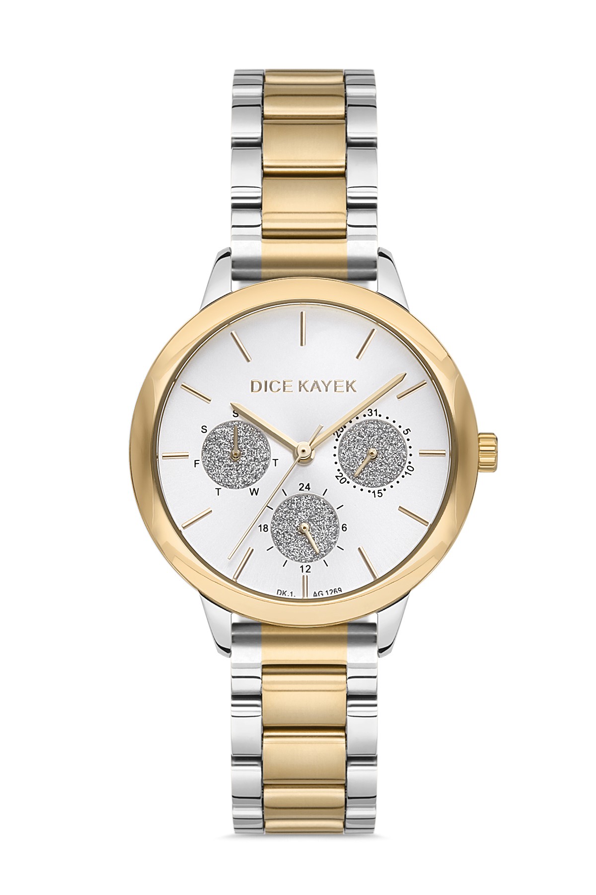 Kadın - Multi̇ Fonksi̇yon - Sari Beyaz - Gümüş - Paslanmaz Masi̇f Çeli̇k - 3 Atm - Sertleşti̇ri̇lmi̇ş Mi̇neral Cam - Dice Kayek