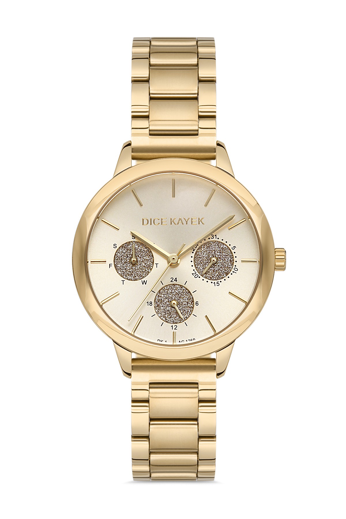 Kadın - Multi̇ Fonksi̇yon - Sari - Sari - Paslanmaz Masi̇f Çeli̇k - 3 Atm - Sertleşti̇ri̇lmi̇ş Mi̇neral Cam - Dice Kayek