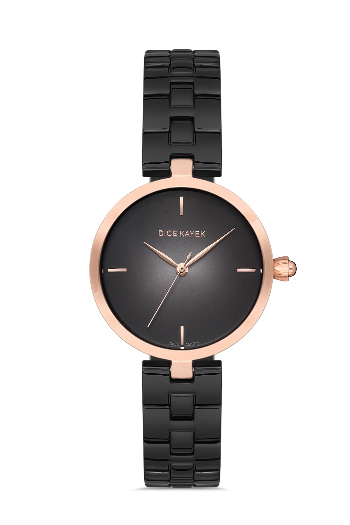 Kadın - Düz - Rose Si̇yah - Si̇yah - Paslanmaz Masi̇f Çeli̇k - 3 Atm - Sertleşti̇ri̇lmi̇ş Mi̇neral Cam - Dice Kayek