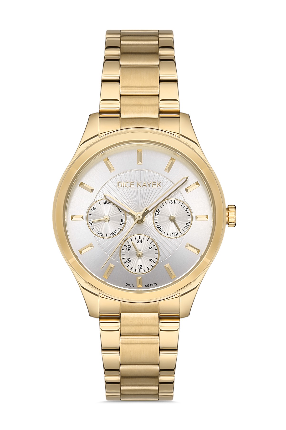 Kadın - Multi̇ Fonksi̇yon - Sari - Gümüş - Paslanmaz Masi̇f Çeli̇k - 3 Atm - Sertleşti̇ri̇lmi̇ş Mi̇neral Cam - Dice Kayek