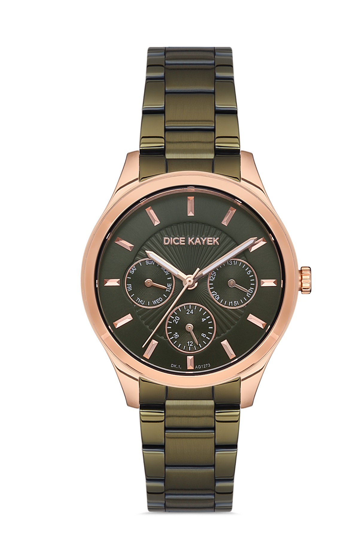 Kadın - Multi̇ Fonksi̇yon - Rose - Yeşi̇l - Paslanmaz Masi̇f Çeli̇k - 3 Atm - Sertleşti̇ri̇lmi̇ş Mi̇neral Cam - Dice Kayek