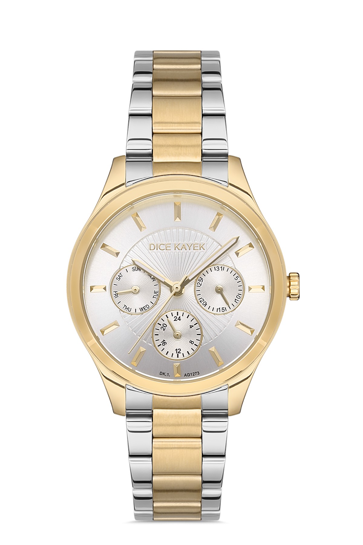 Kadın - Multi̇ Fonksi̇yon - Sari Beyaz - Gümüş - Paslanmaz Masi̇f Çeli̇k - 3 Atm - Sertleşti̇ri̇lmi̇ş Mi̇neral Cam - Dice Kayek