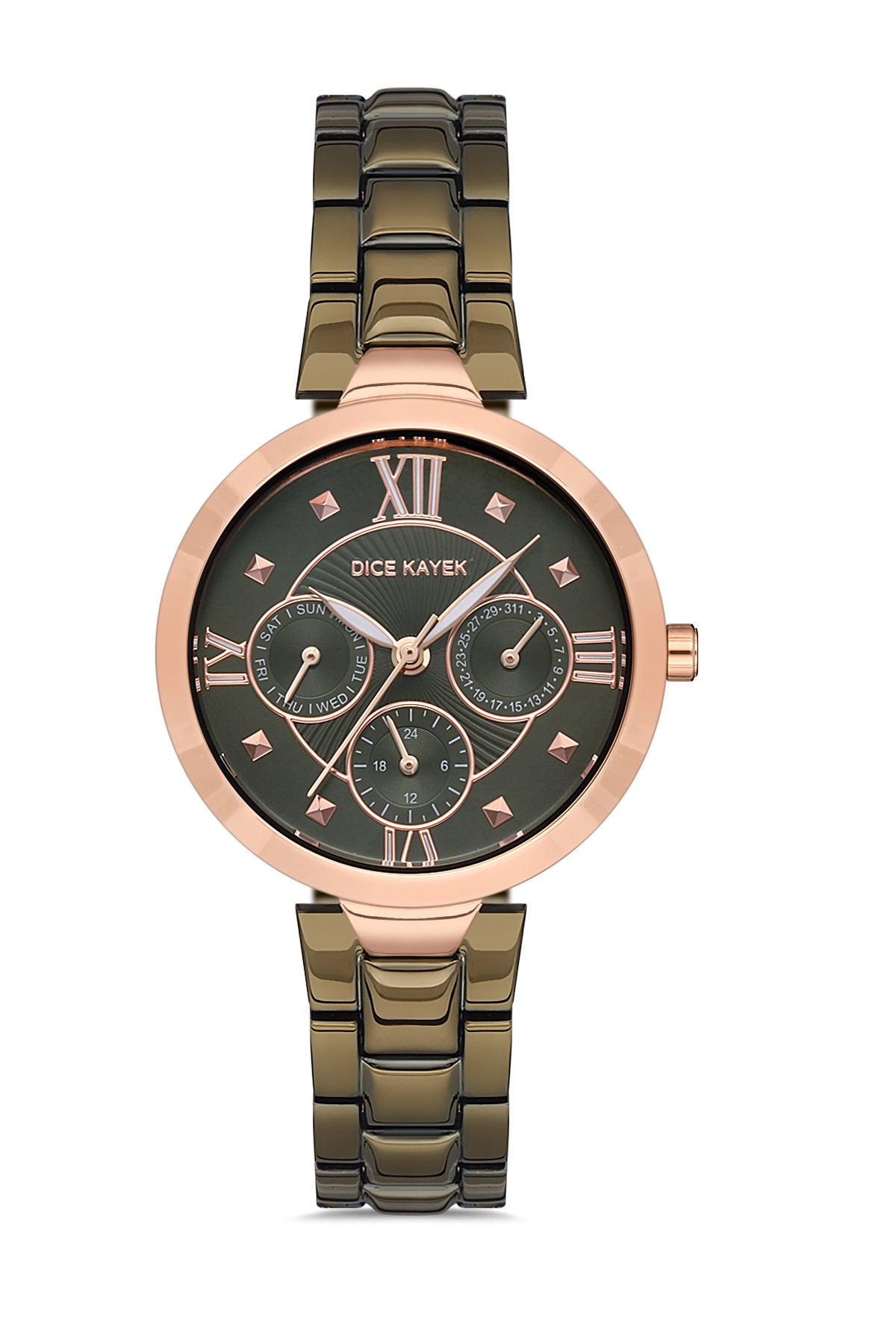 Kadın - Multi̇ Fonksi̇yon - Rose - Yeşi̇l - Paslanmaz Masi̇f Çeli̇k - 3 Atm - Sertleşti̇ri̇lmi̇ş Mi̇neral Cam - Dice Kayek - 34