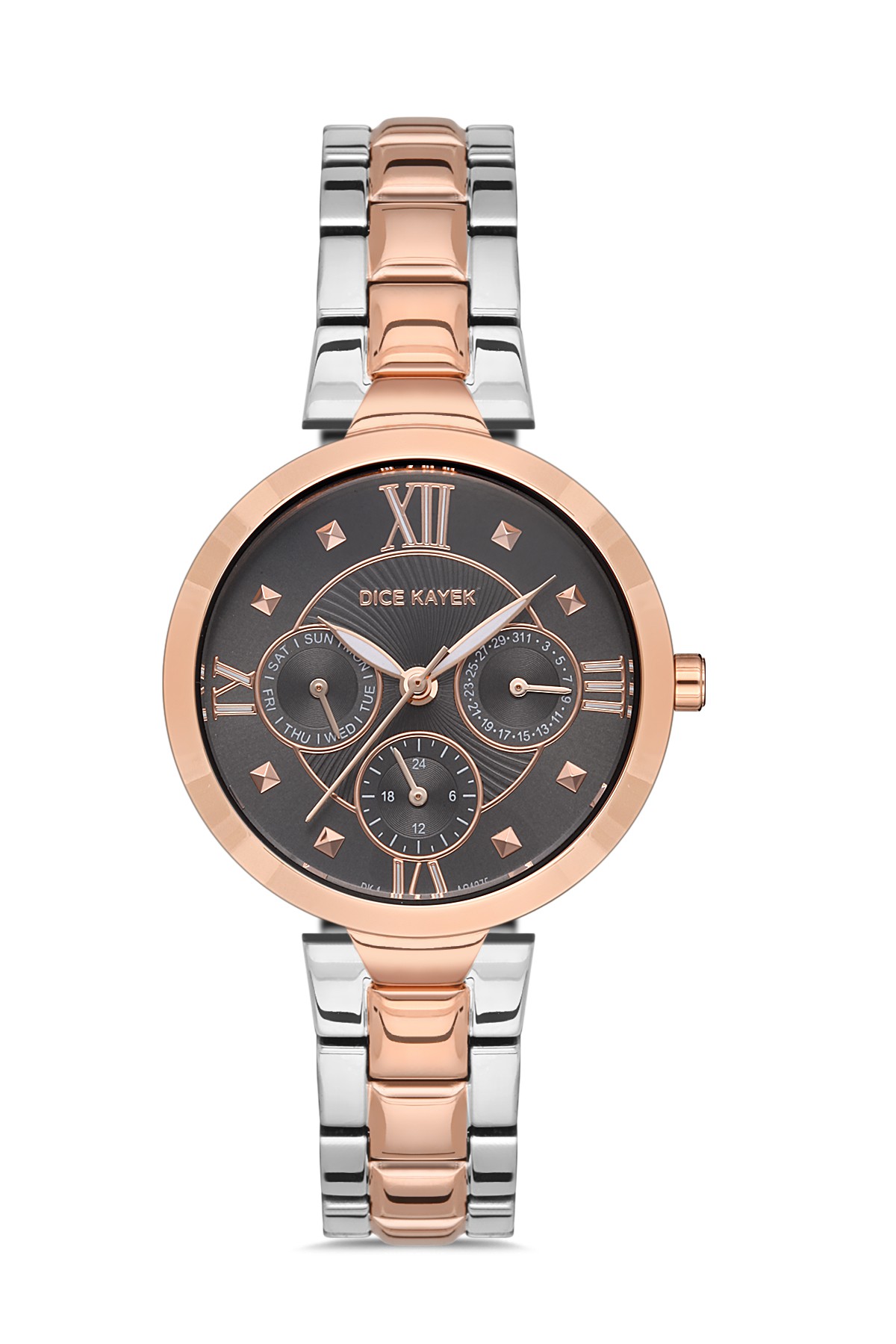 Kadın - Multi̇ Fonksi̇yon - Rose Beyaz - Si̇yah - Paslanmaz Masi̇f Çeli̇k - 3 Atm - Sertleşti̇ri̇lmi̇ş Mi̇neral Cam - Dice Kayek - 34