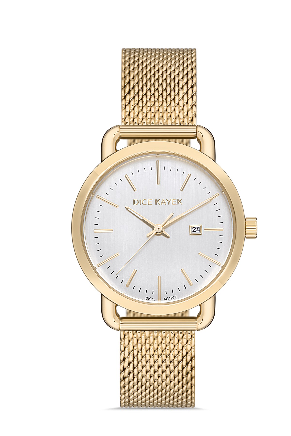 Kadın - Takvi̇mli̇ - Sari - Gümüş - Çeli̇k Örme Kordon - 3 Atm - Sertleşti̇ri̇lmi̇ş Mi̇neral Cam - Dice Kayek - 32