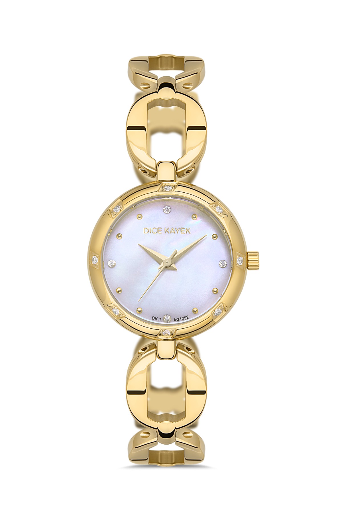 Kadın - Taşli - Sari - Gümüş - Paslanmaz Masi̇f Çeli̇k - 3 Atm - Sertleşti̇ri̇lmi̇ş Mi̇neral Cam - Dice Kayek