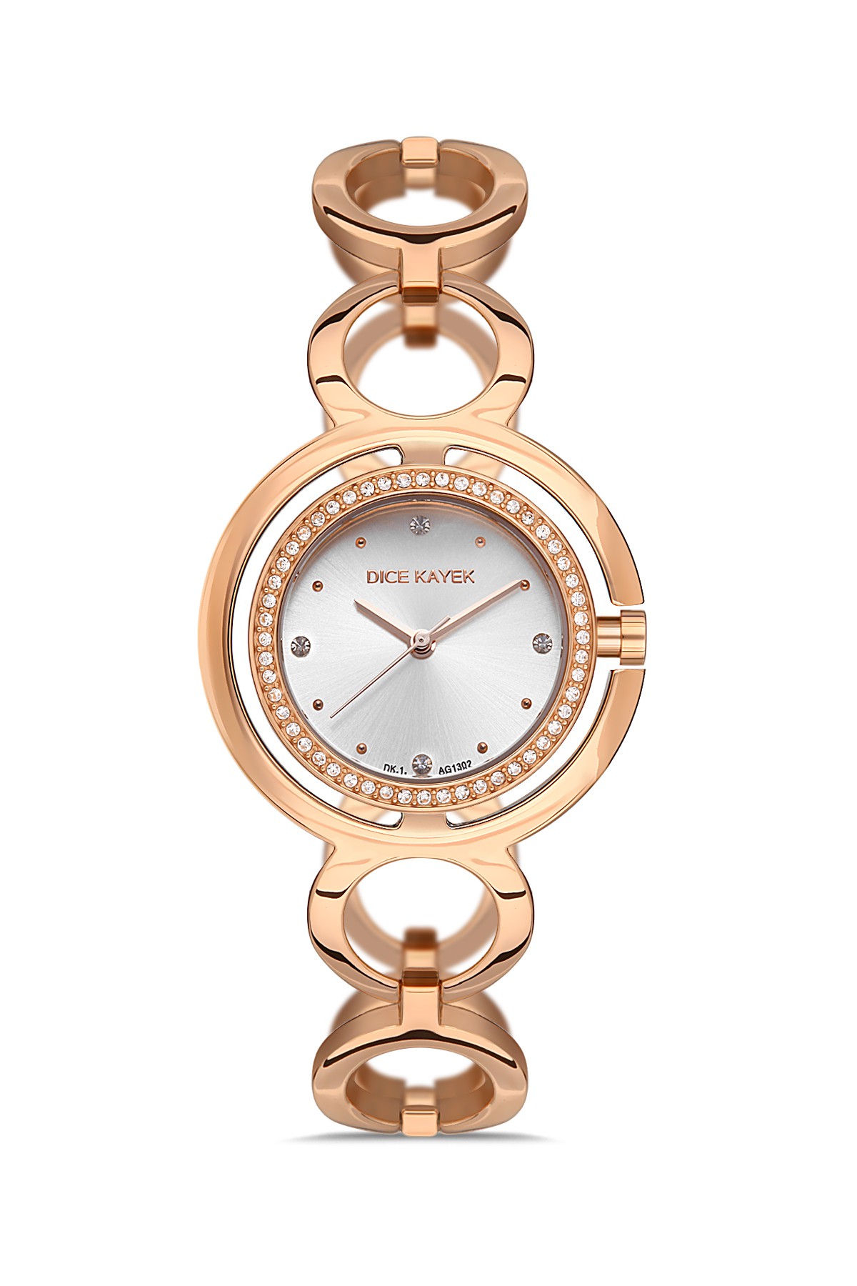 Kadın - Düz - Rose - Gümüş - Paslanmaz Masi̇f Çeli̇k - 3 Atm - Sertleşti̇ri̇lmi̇ş Mi̇neral Cam - Dice Kayek