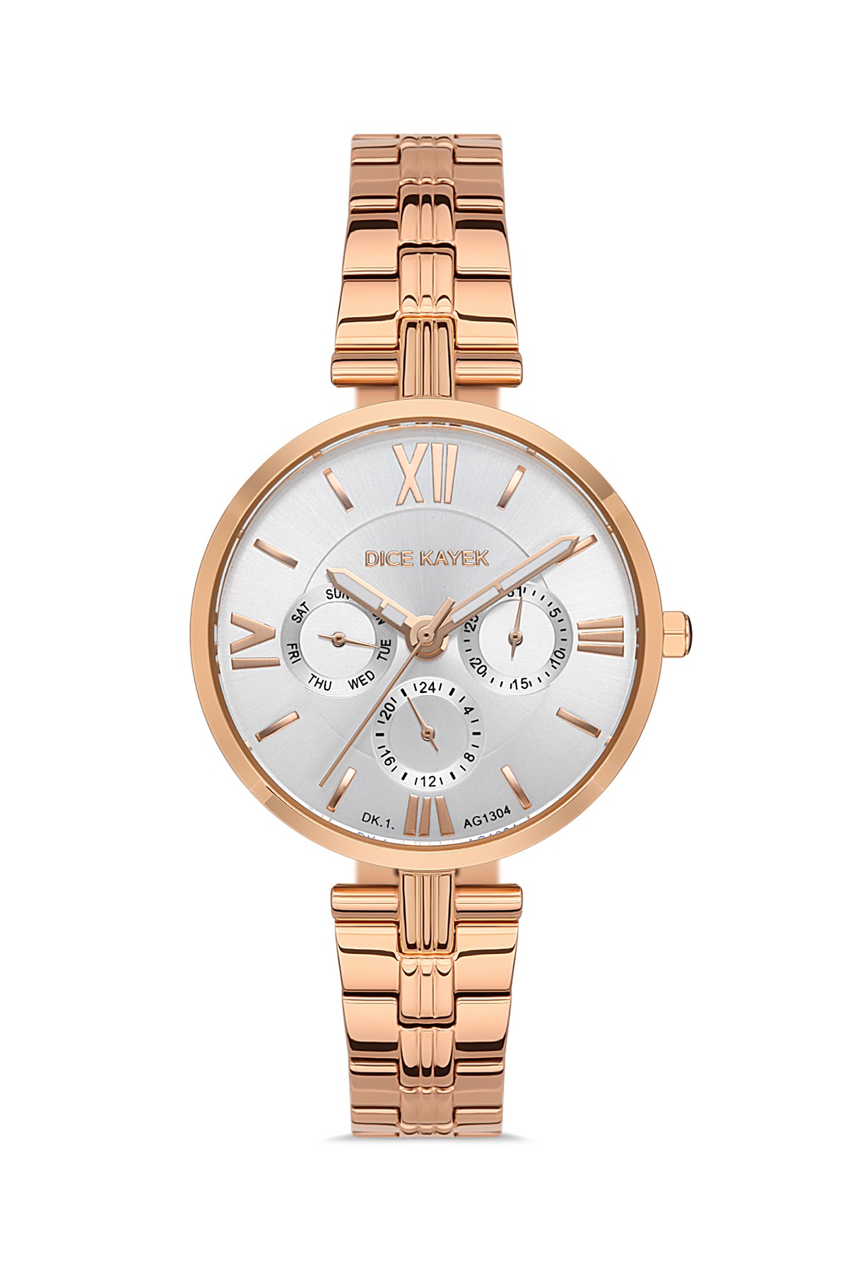 Kadın - Multi̇ Fonksi̇yon - Rose - Gümüş - Paslanmaz Masi̇f Çeli̇k - 3 Atm - Sertleşti̇ri̇lmi̇ş Mi̇neral Cam - Dice Kayek