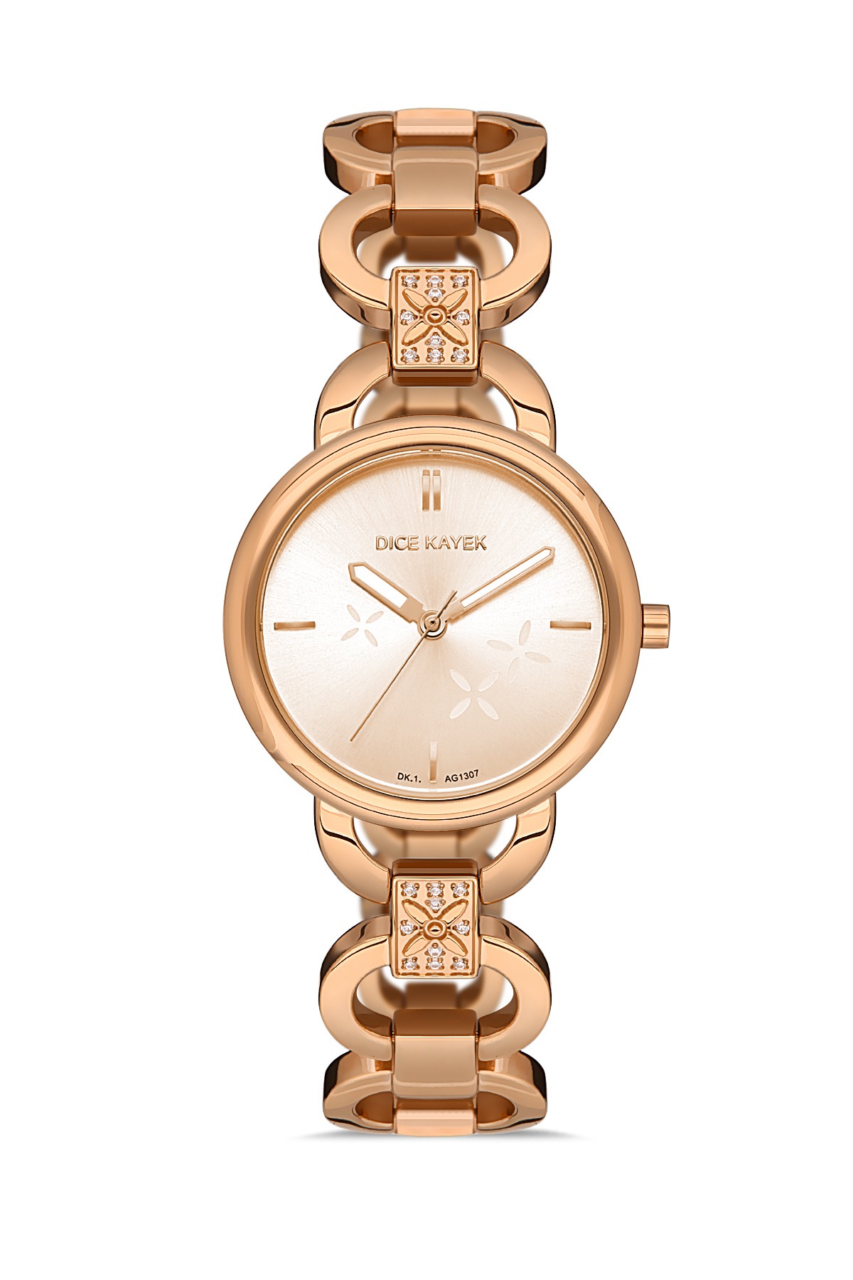 Kadın - Düz - Rose - Gümüş - Paslanmaz Masi̇f Çeli̇k - 3 Atm - Sertleşti̇ri̇lmi̇ş Mi̇neral Cam - Dice Kayek