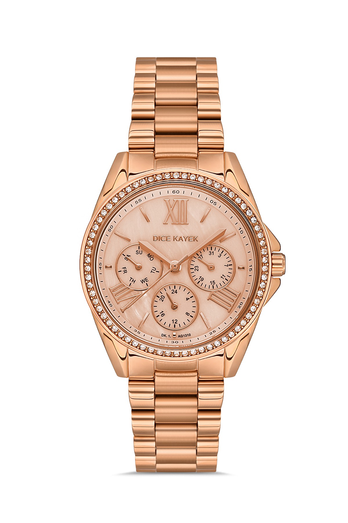 Kadın - Multi̇ Fonksi̇yon - Rose - Rose - Paslanmaz Masi̇f Çeli̇k - 3 Atm - Sertleşti̇ri̇lmi̇ş Mi̇neral Cam - Dice Kayek