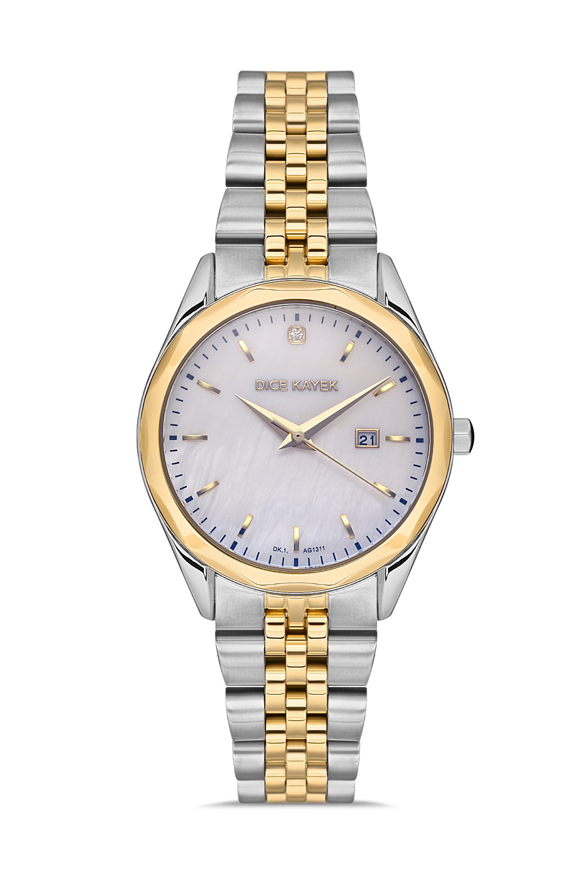 Kadın - Takvi̇mli̇ - Sari Beyaz - Gümüş - Paslanmaz Masi̇f Çeli̇k - 3 Atm - Sertleşti̇ri̇lmi̇ş Mi̇neral Cam - Dice Kayek
