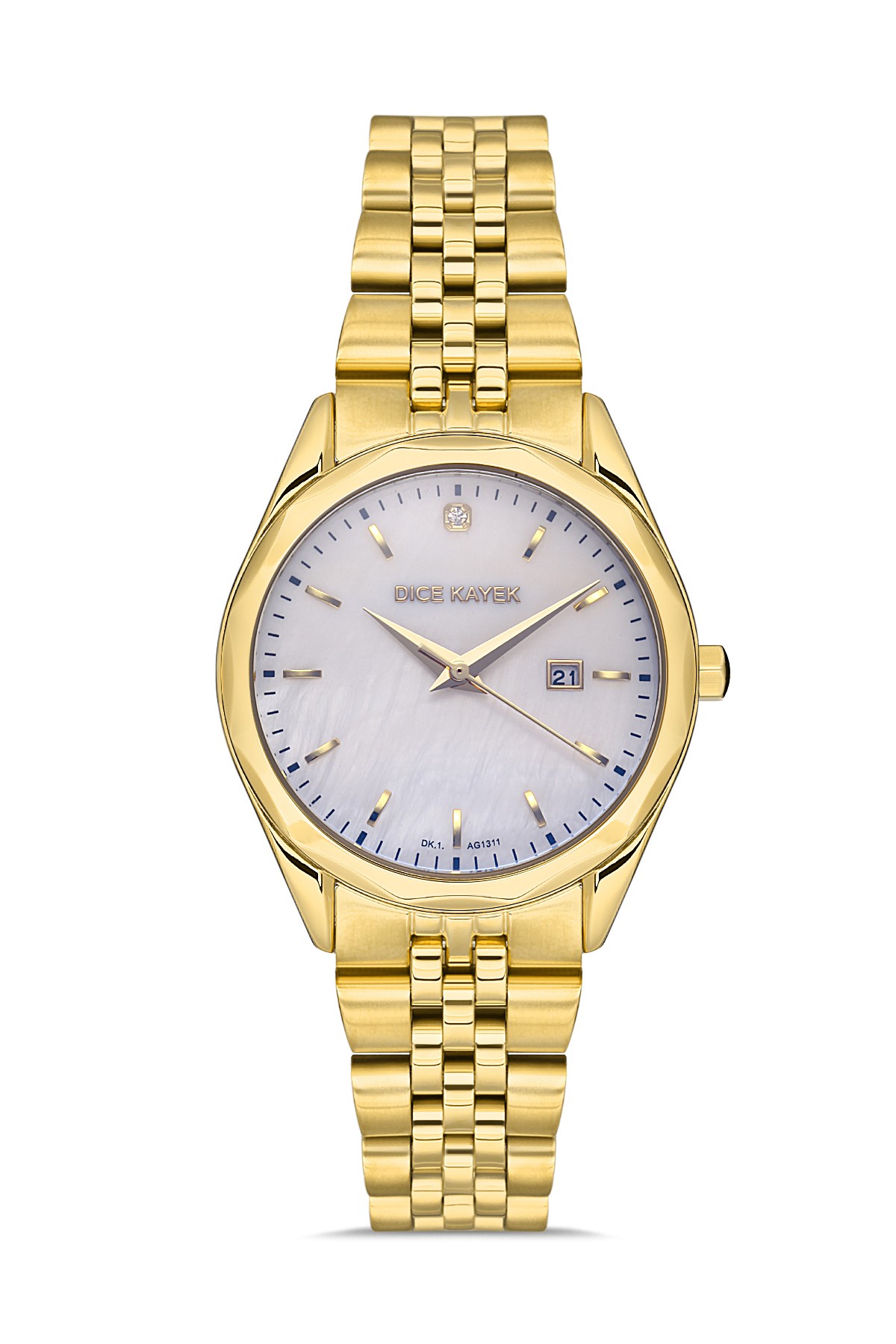 Kadın - Takvi̇mli̇ - Sari - Gümüş - Paslanmaz Masi̇f Çeli̇k - 3 Atm - Sertleşti̇ri̇lmi̇ş Mi̇neral Cam - Dice Kayek