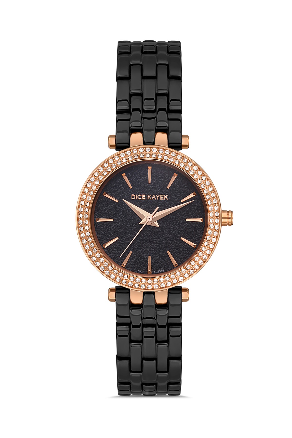 Kadın - Düz - Rose - Si̇yah - Paslanmaz Masi̇f Çeli̇k - 3 Atm - Sertleşti̇ri̇lmi̇ş Mi̇neral Cam - Dice Kayek