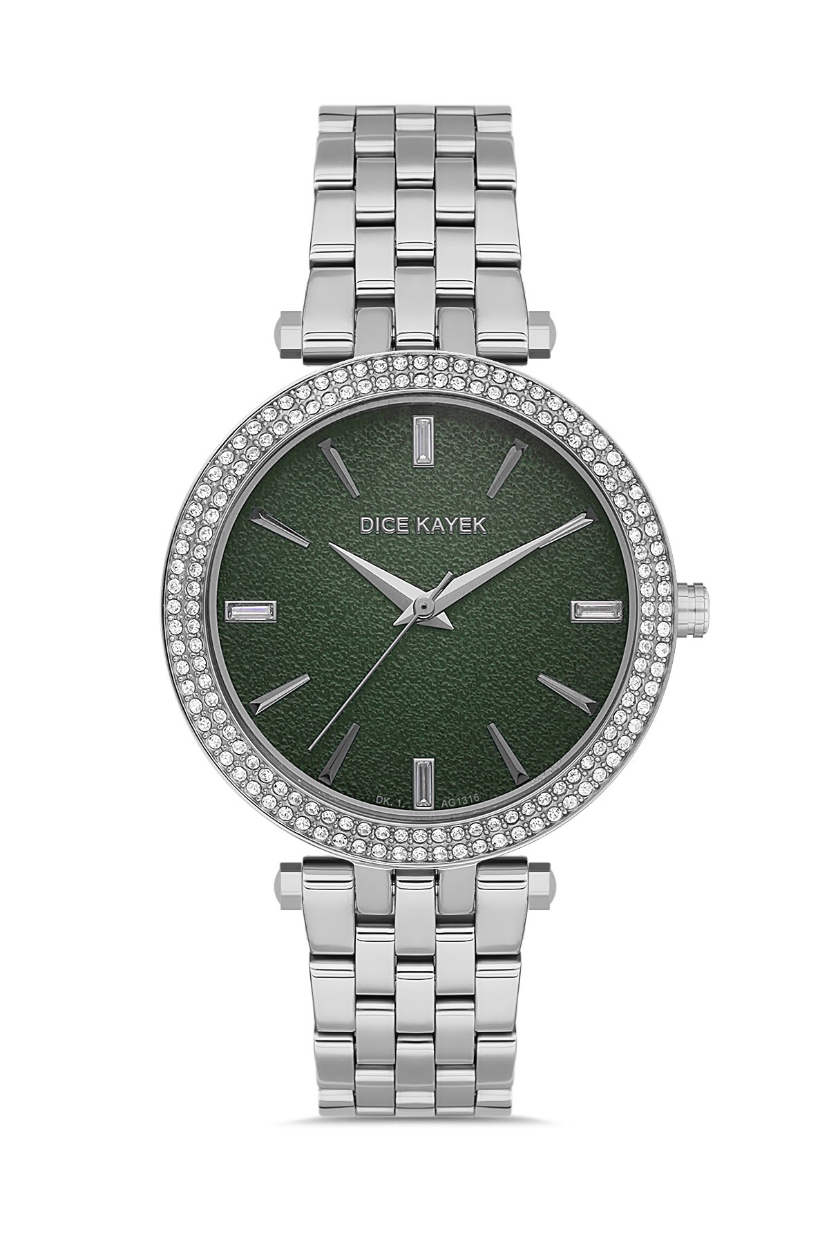 Kadın - Taşli - Gümüş - Yeşi̇l - Paslanmaz Masi̇f Çeli̇k - 3 Atm - Sertleşti̇ri̇lmi̇ş Mi̇neral Cam - Dice Kayek