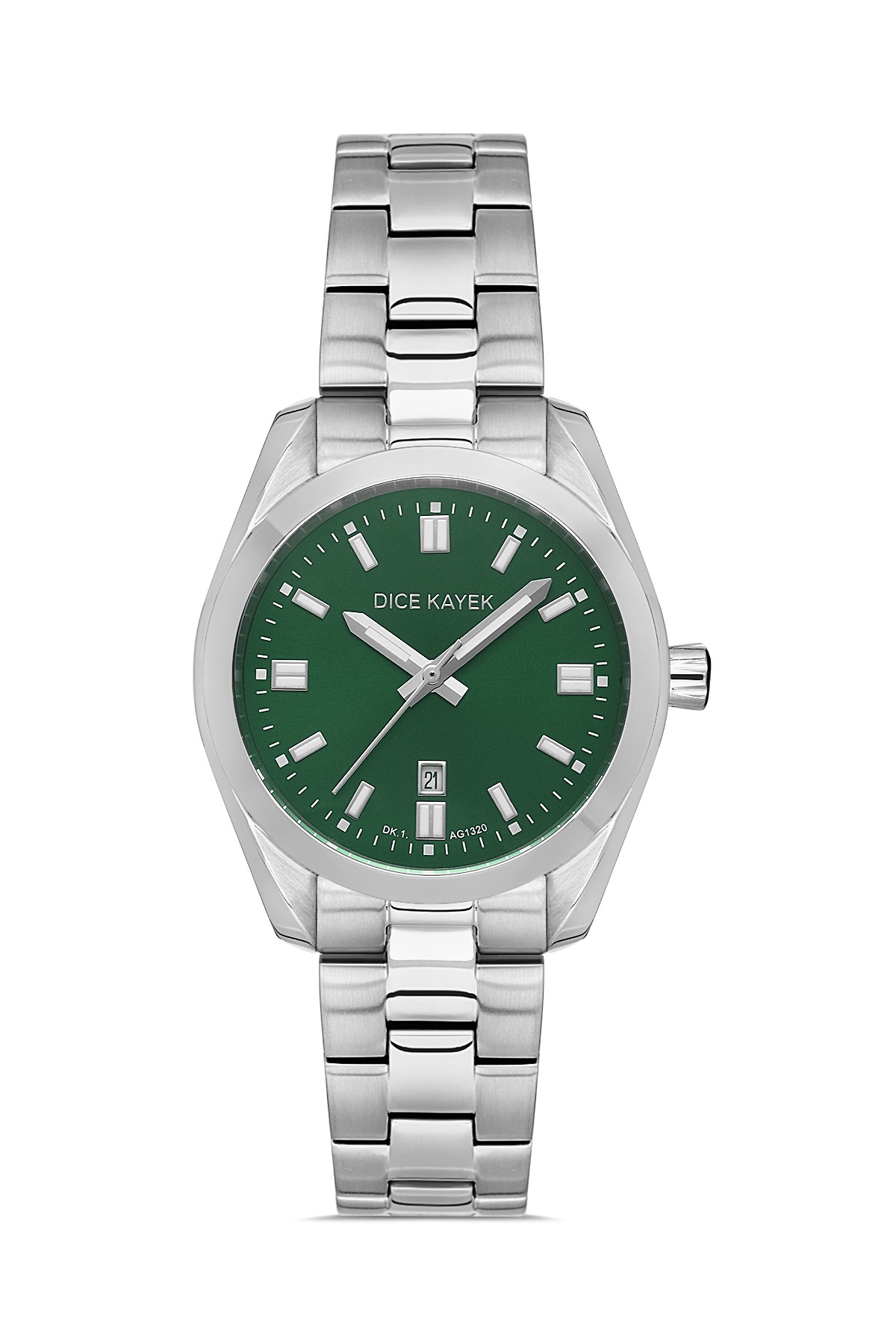 Kadın - Takvi̇mli̇ - Gümüş - Yeşi̇l - Paslanmaz Masi̇f Çeli̇k - 3 Atm - Sertleşti̇ri̇lmi̇ş Mi̇neral Cam - Dice Kayek