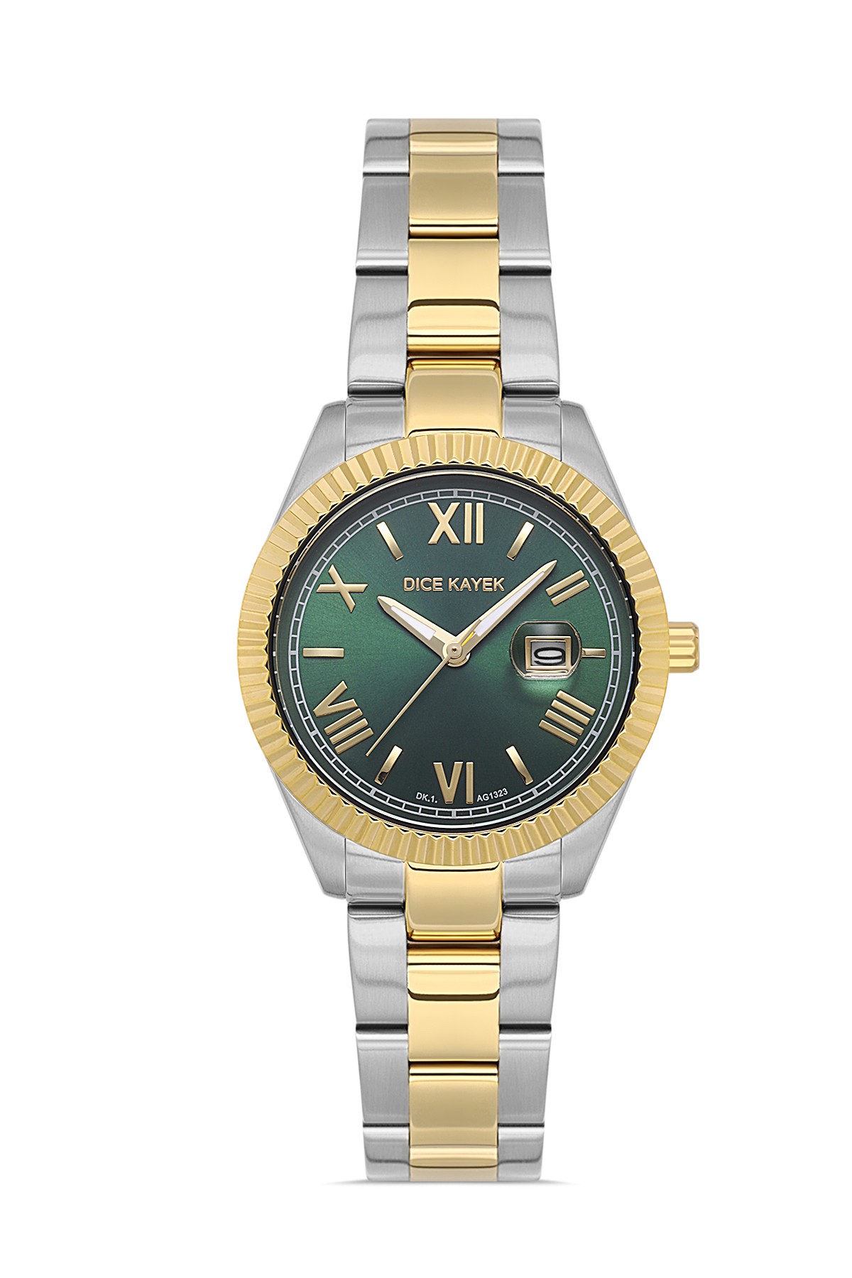 Kadın - Takvi̇mli̇ - Sari Beyaz - Yeşi̇l - Paslanmaz Masi̇f Çeli̇k - 3 Atm - Sertleşti̇ri̇lmi̇ş Mi̇neral Cam - Dice Kayek