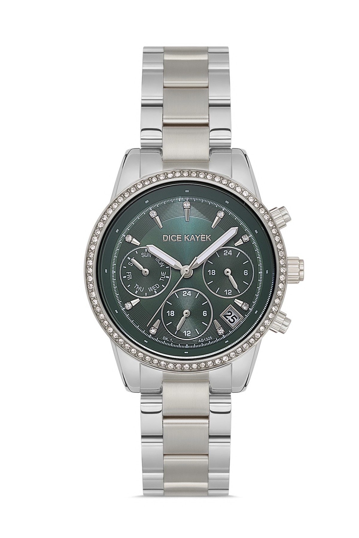 Kadın - Multi̇ Fonksi̇yon - Gümüş - Yeşi̇l - Paslanmaz Masi̇f Çeli̇k - 3 Atm - Sertleşti̇ri̇lmi̇ş Mi̇neral Cam - Dice Kayek