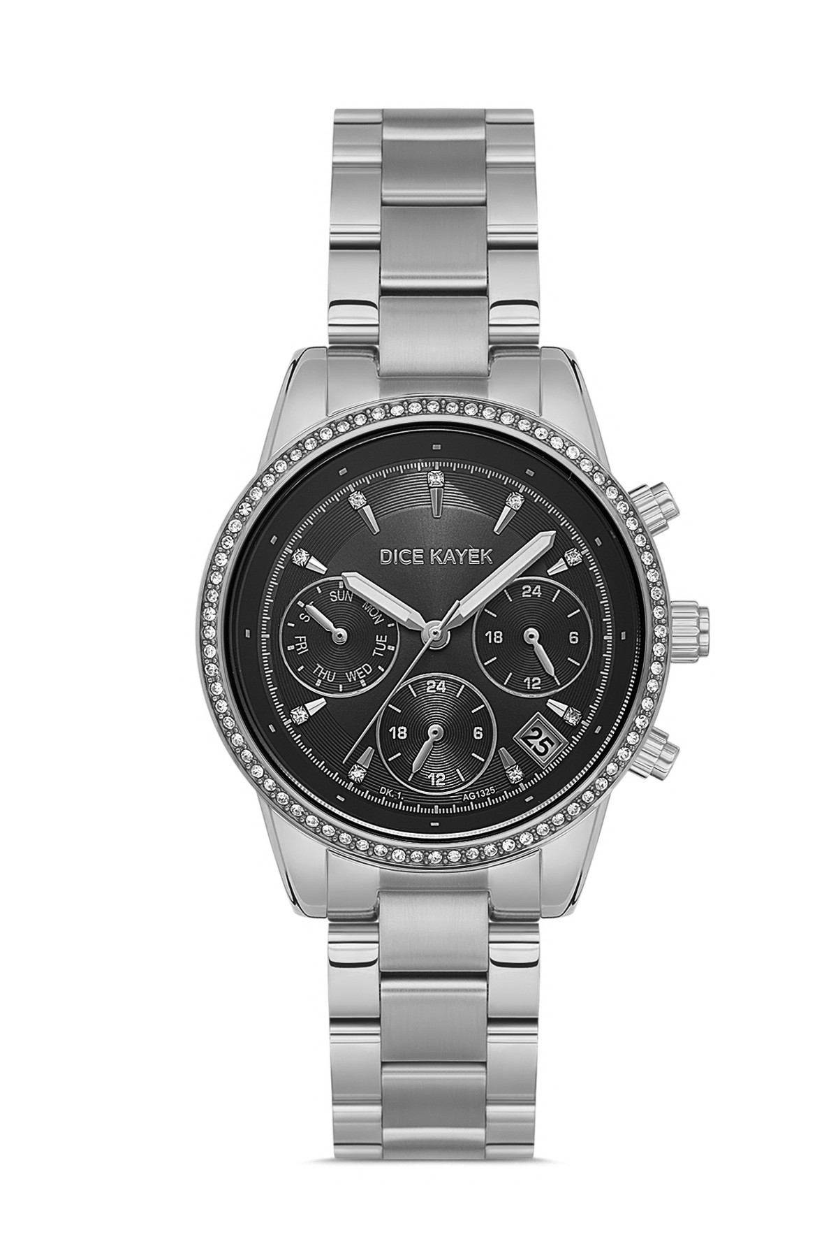 Kadın - Multi̇ Fonksi̇yon - Gümüş - Si̇yah - Paslanmaz Masi̇f Çeli̇k - 3 Atm - Sertleşti̇ri̇lmi̇ş Mi̇neral Cam - Dice Kayek